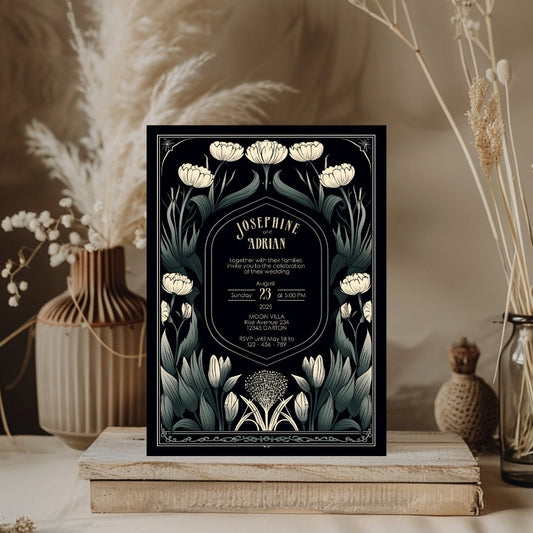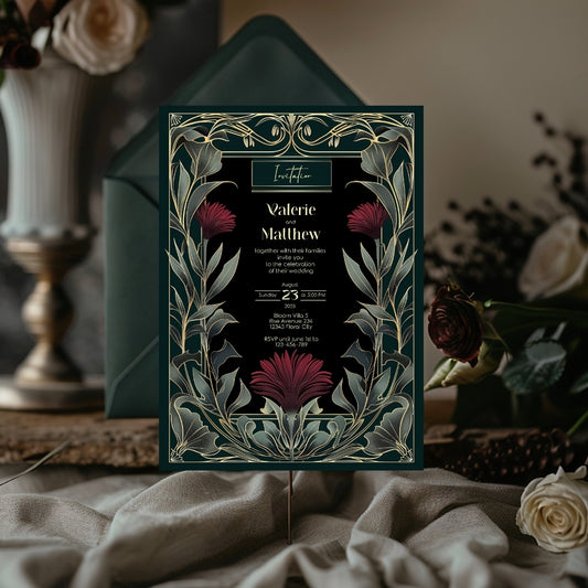 Mystic Thistle Gothic Greenery Wedding Invitation