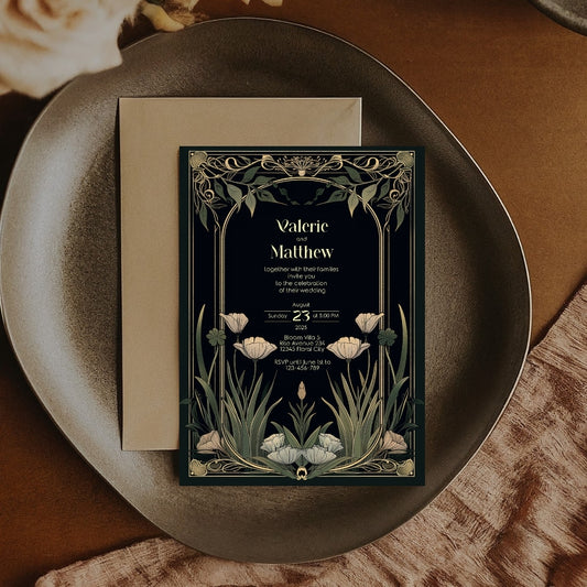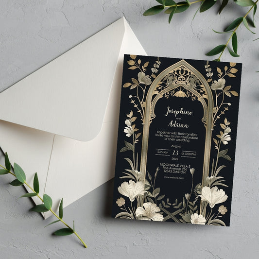 Dark Academia Gothic Vintage Garden Wedding Invitation