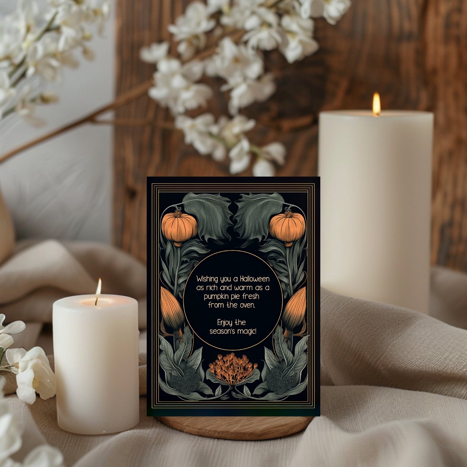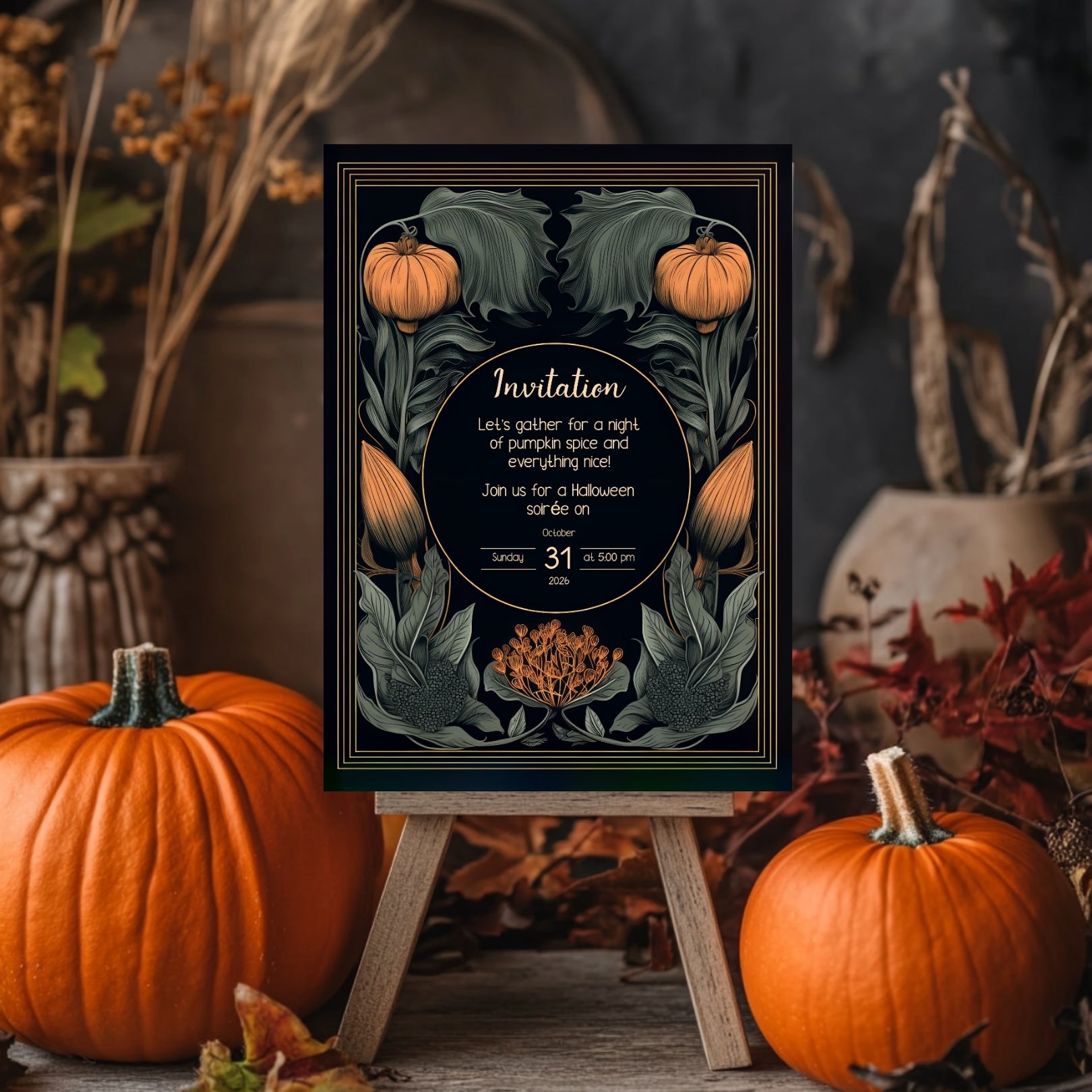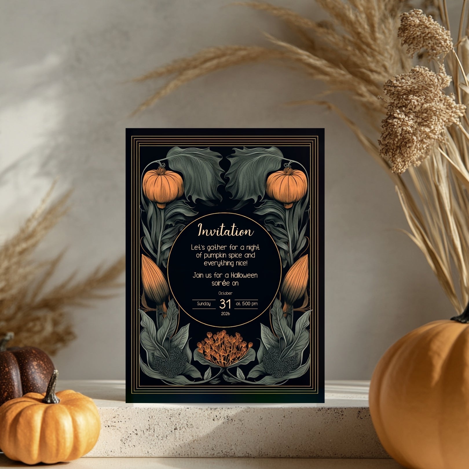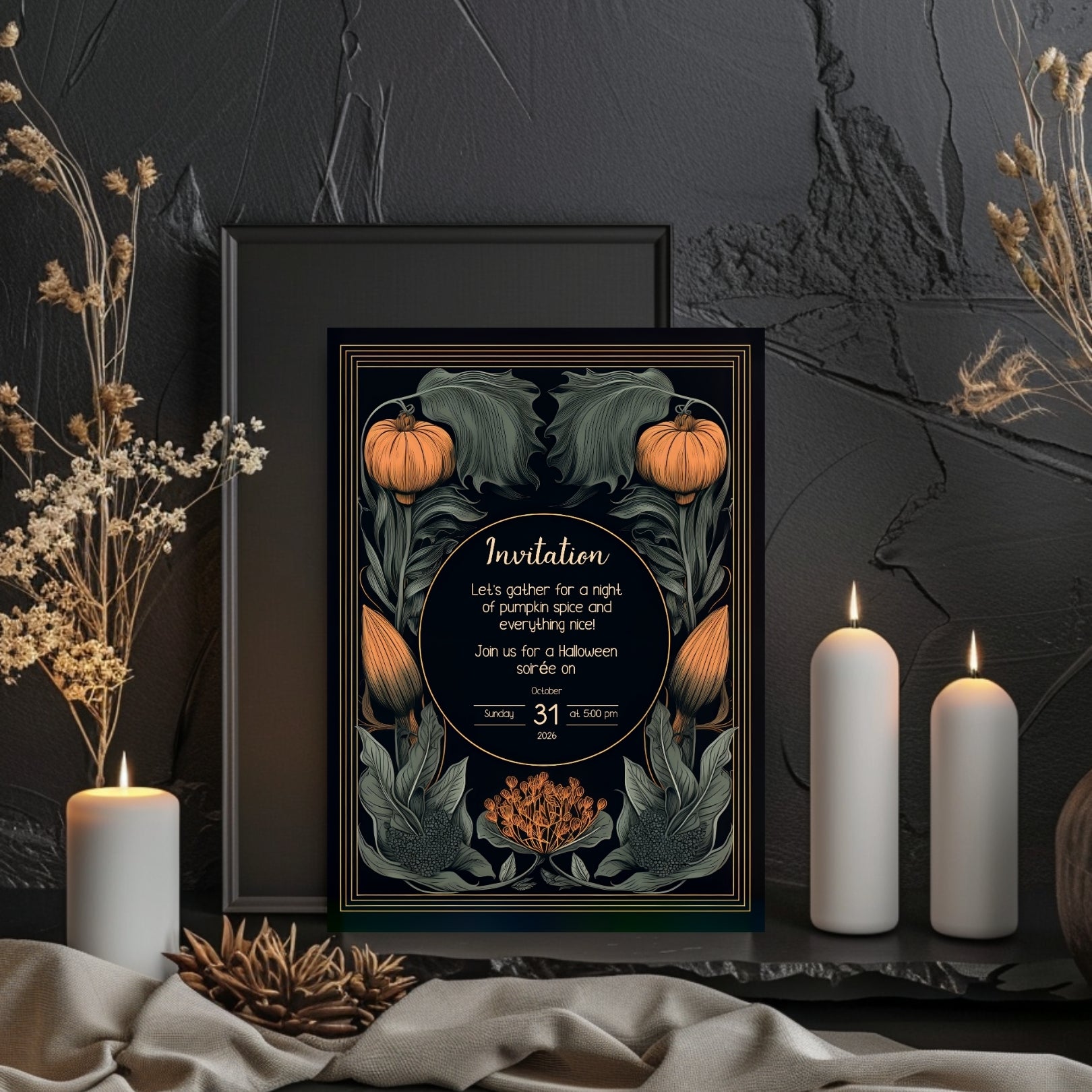 Autumn Gothic Halloween Invitation - Pumpkin and Floral Harvest Design