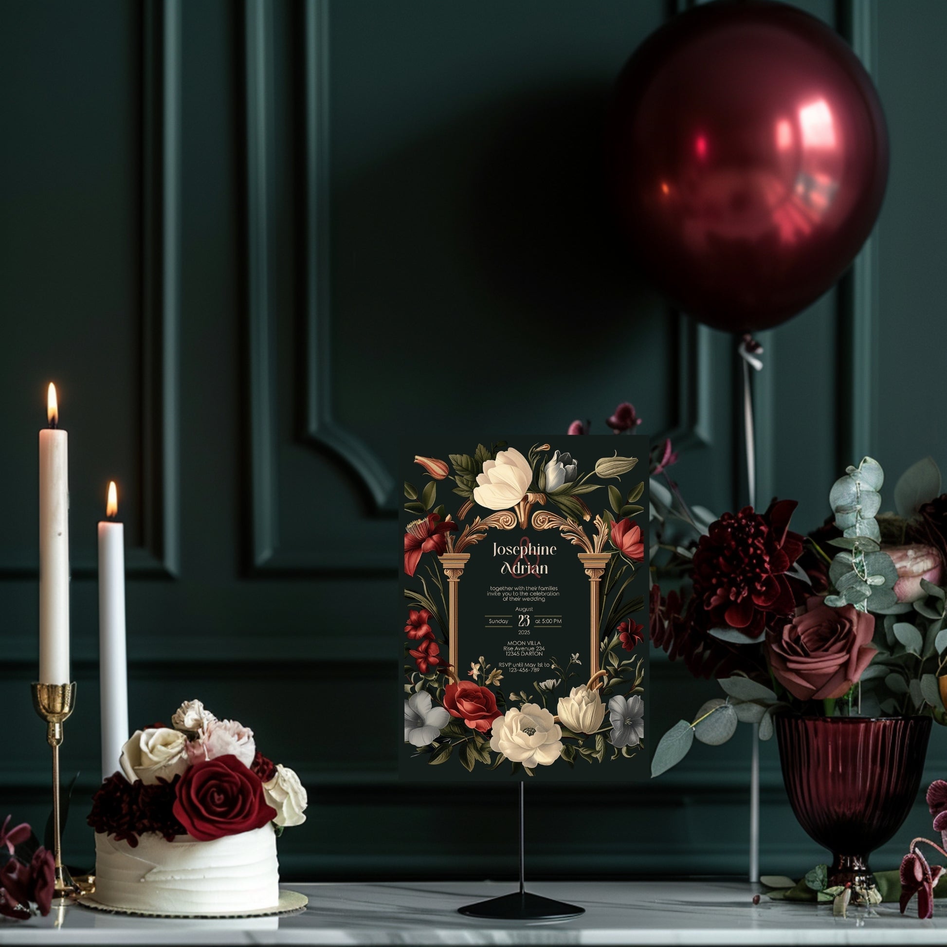 Make a bold and timeless statement with this Baroque Wedding Invitation Set, a luxurious 8-piece digital bundle that’s perfect for your most unforgettable day. With rich florals, elegant gold accents, and classic architecture, this printable stationery suite is ideal for couples seeking a vintage romantic theme with a regal twist. Designed with sophistication and drama, it’s fully editable and easy to print or send digitally.