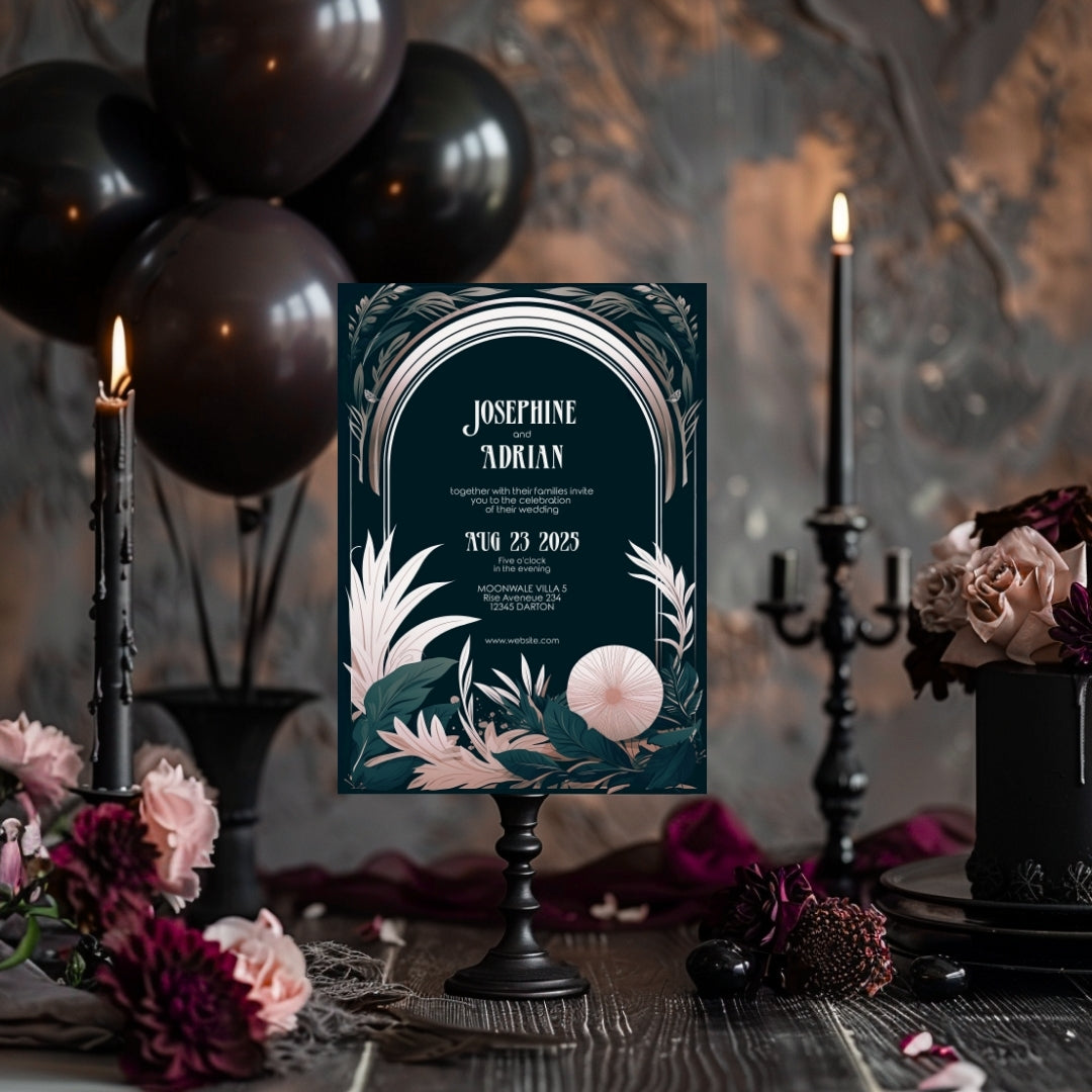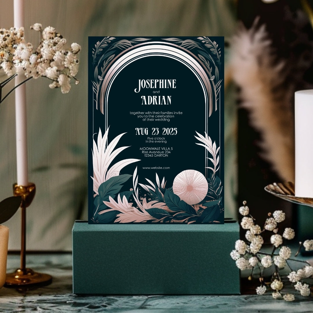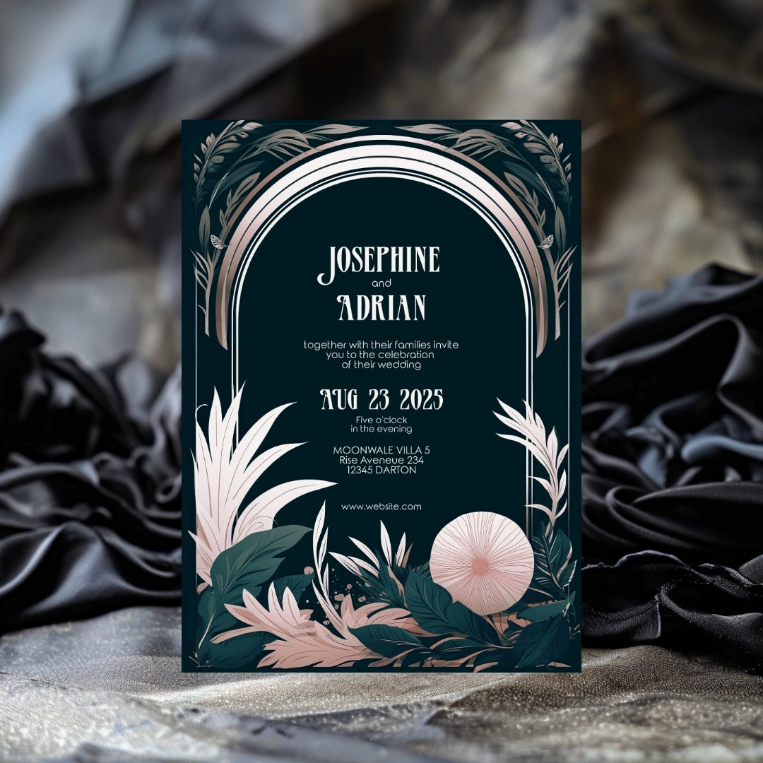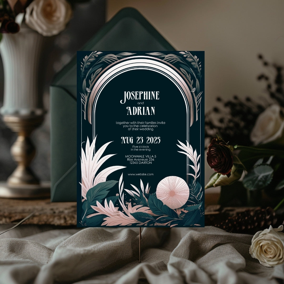 Let the stars and moon align on your special day with this Celestial Art Nouveau - Art Deco blend invitation. The ethereal design elements, combined with an elegant and mystical color palette, set the stage for a heavenly matrimony. This digital invitation template, perfect for a wedding, anniversary, or a celestial-themed event, is easily personalized with Corjl, allowing you to add a touch of the cosmos to your special occasion.