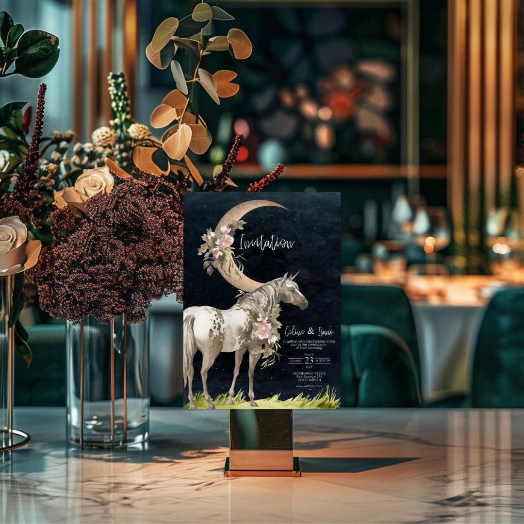 Celestial Horse Dark Romantic Minimalist Wedding Invitation