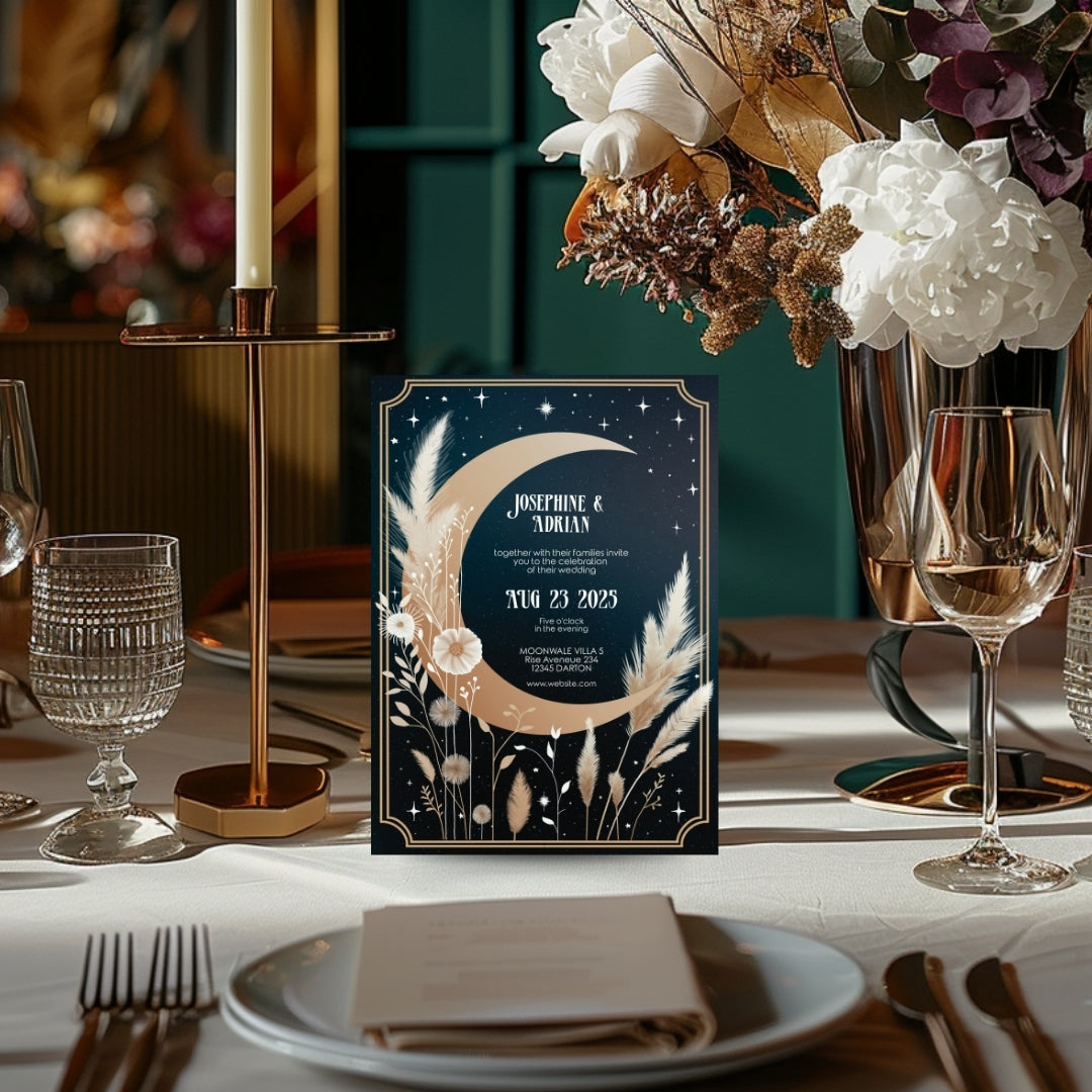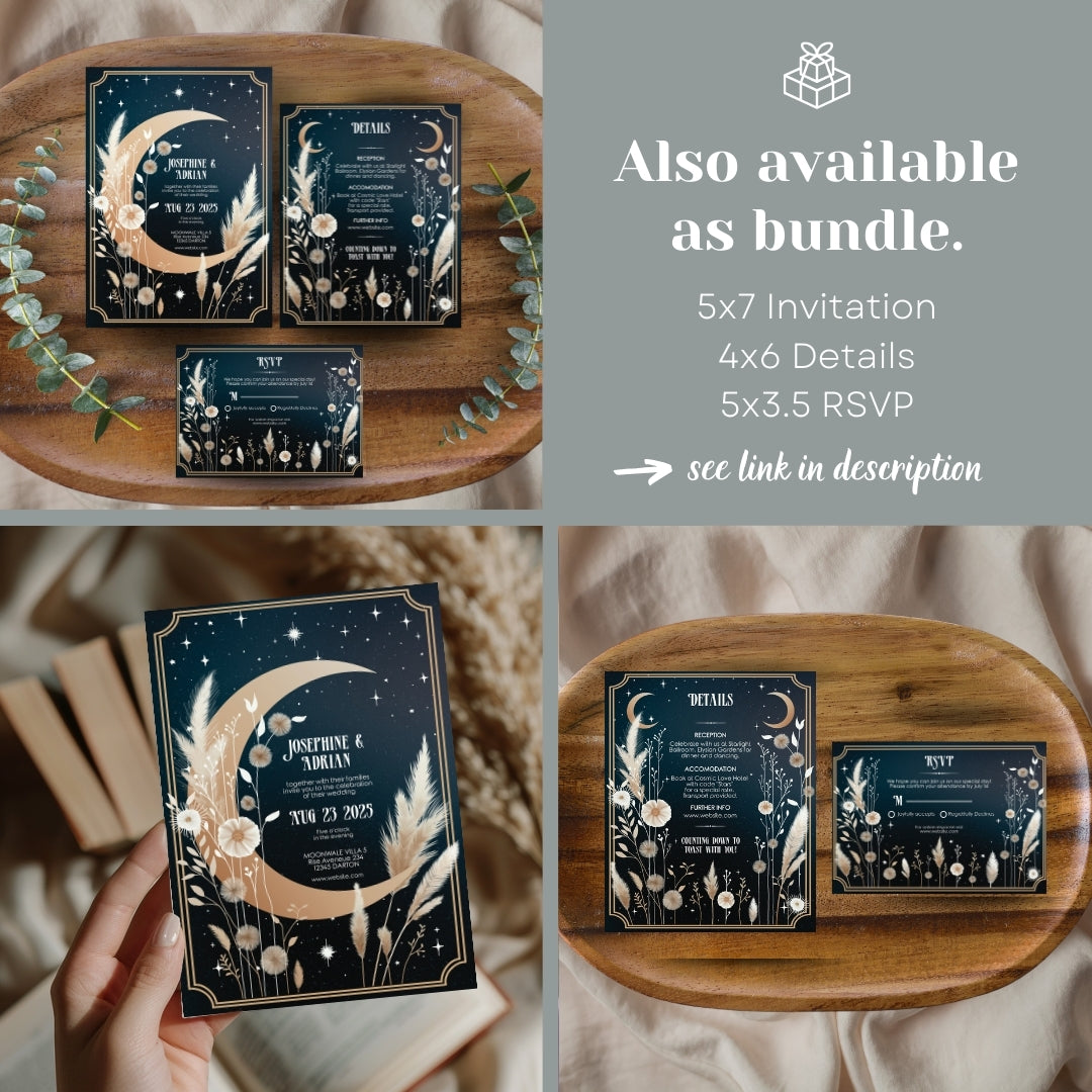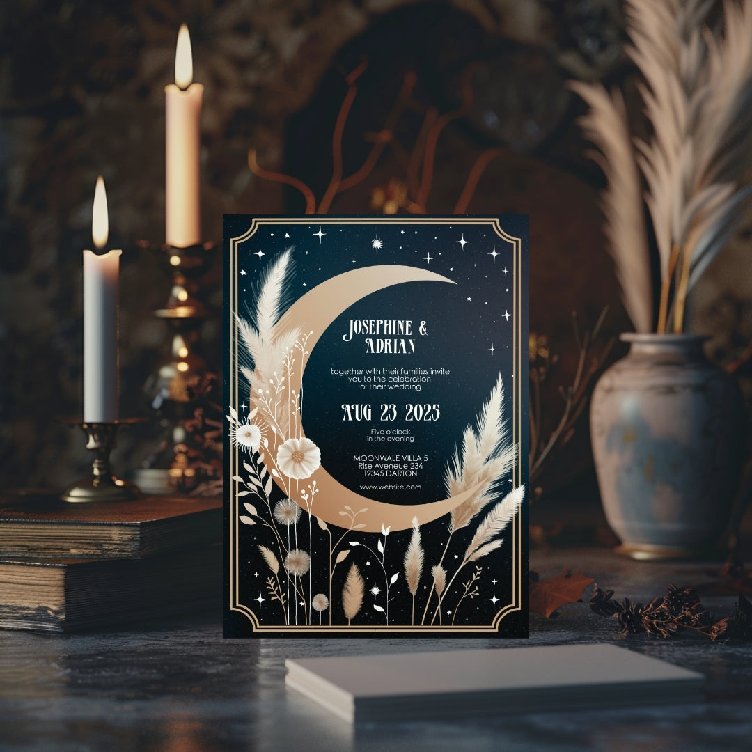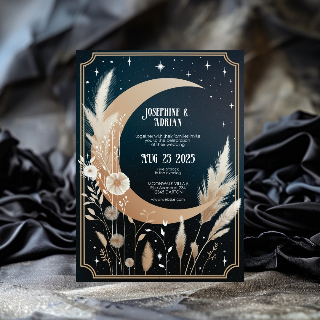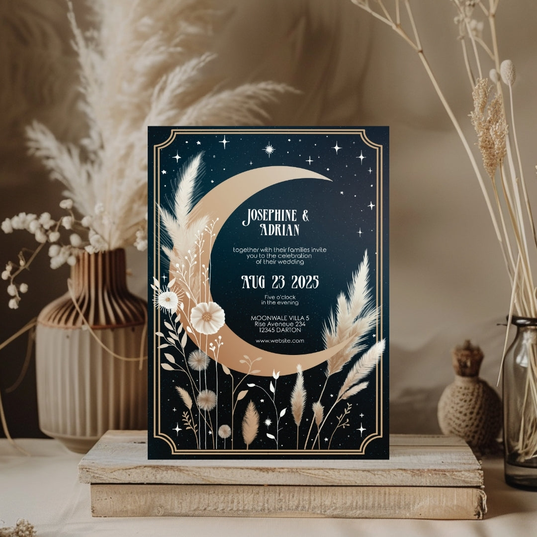 Celestial Moon Dry Pampas Grass Wedding Invitation