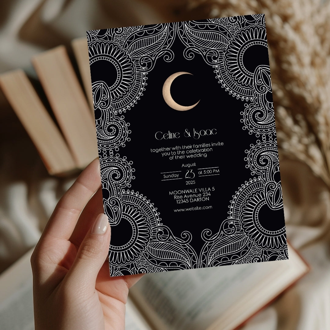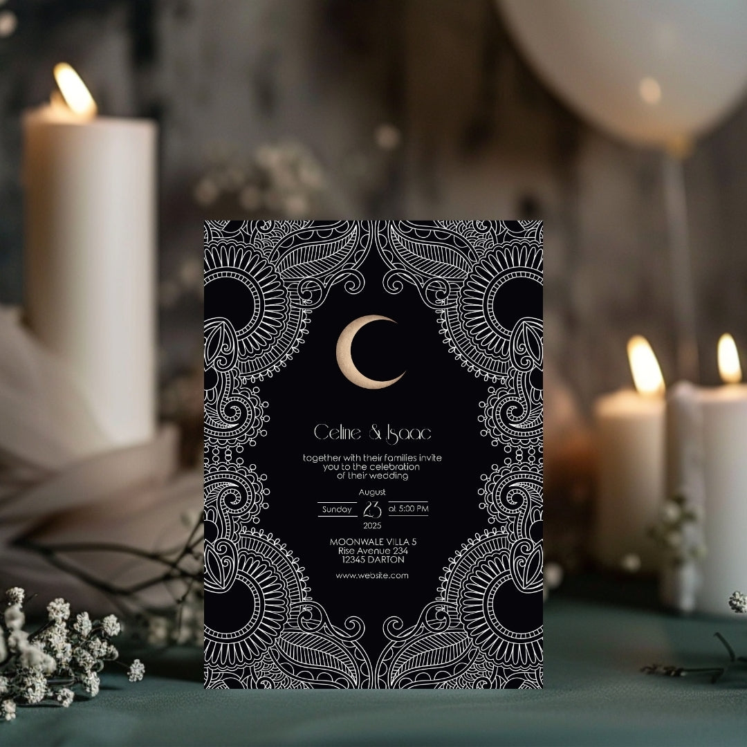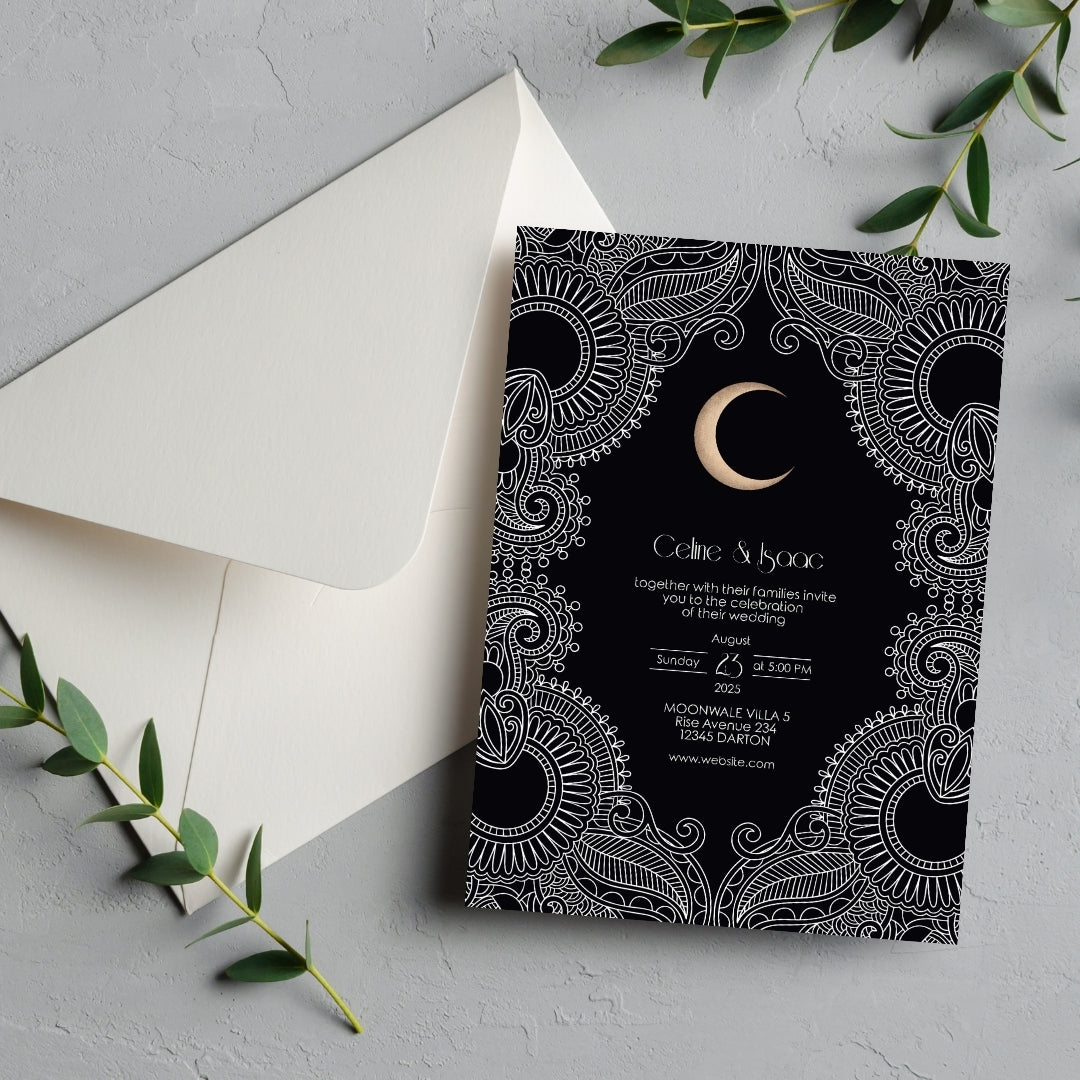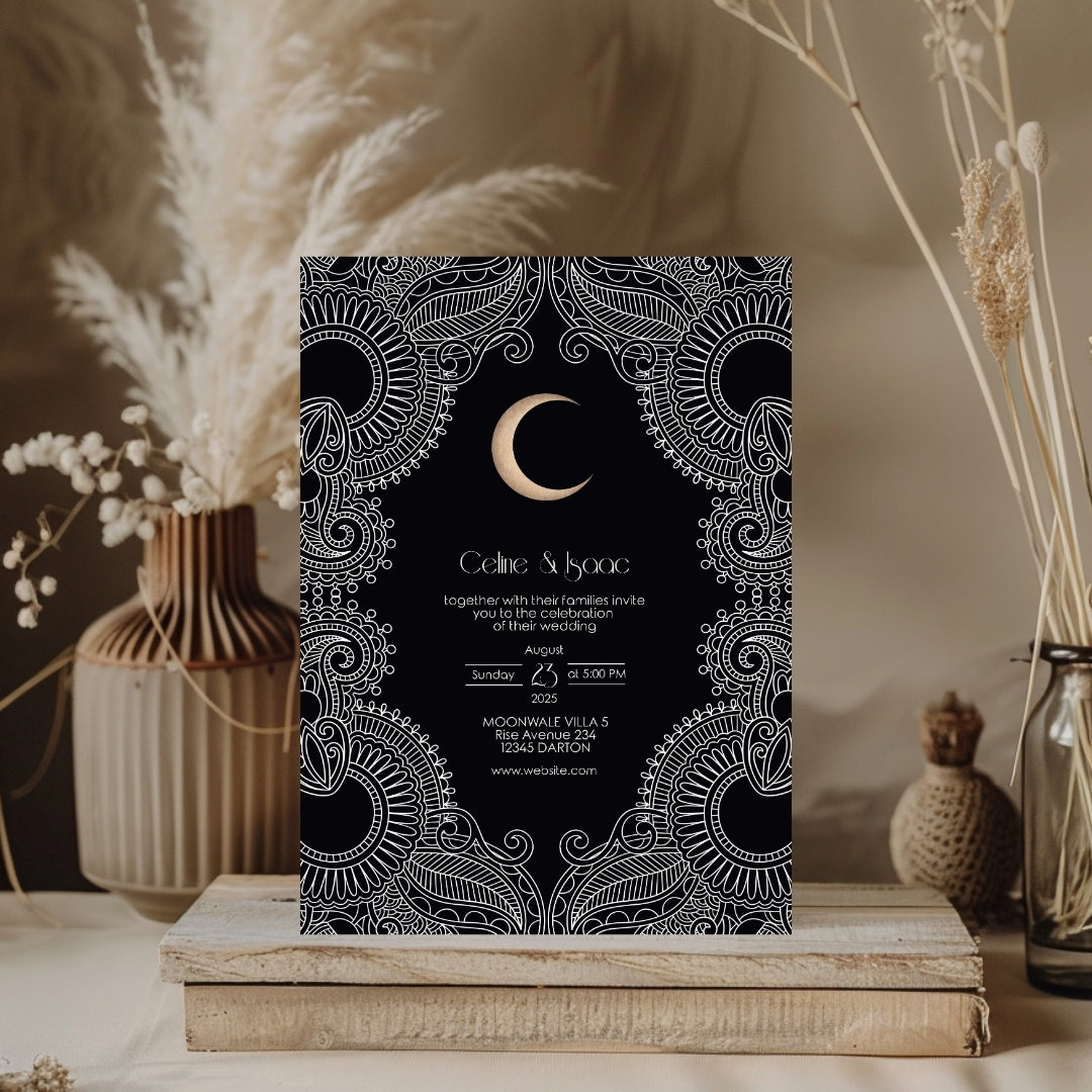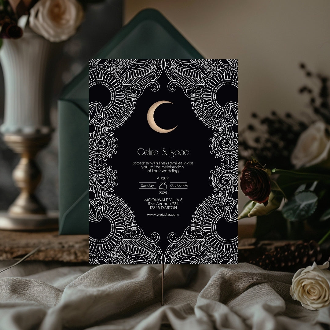 Celestial Moon Paisley Elegance Wedding Invitation