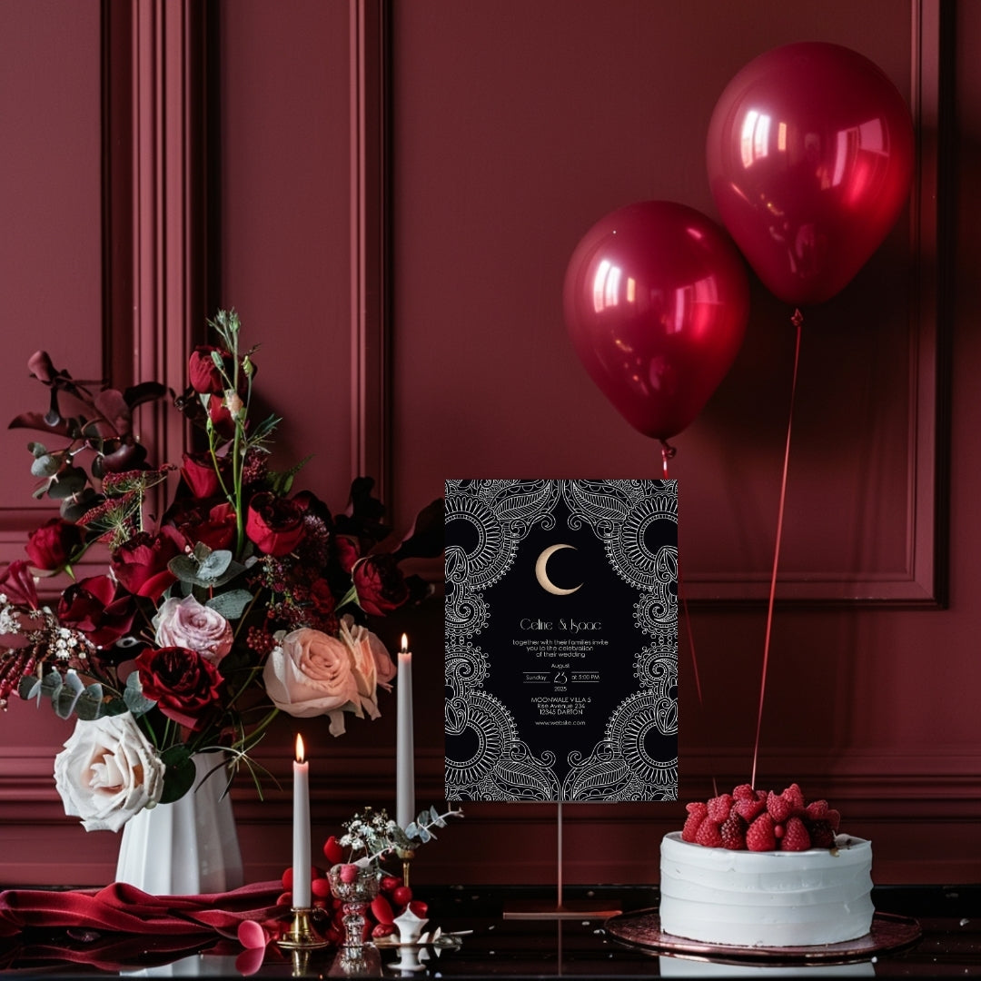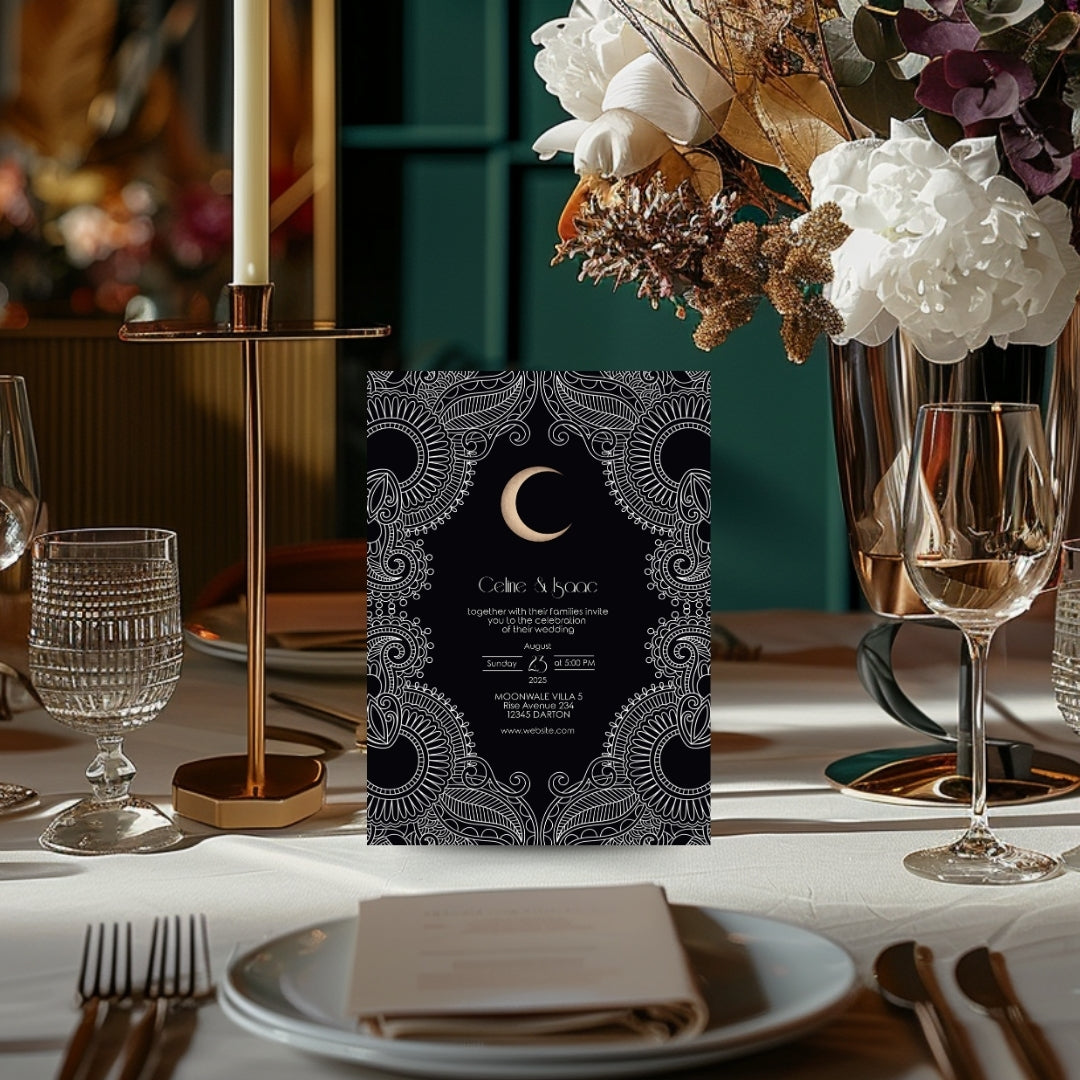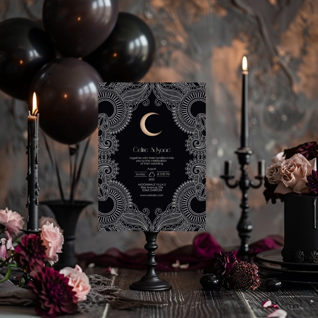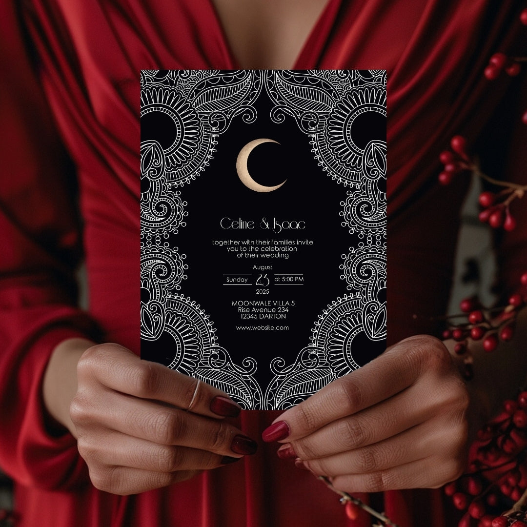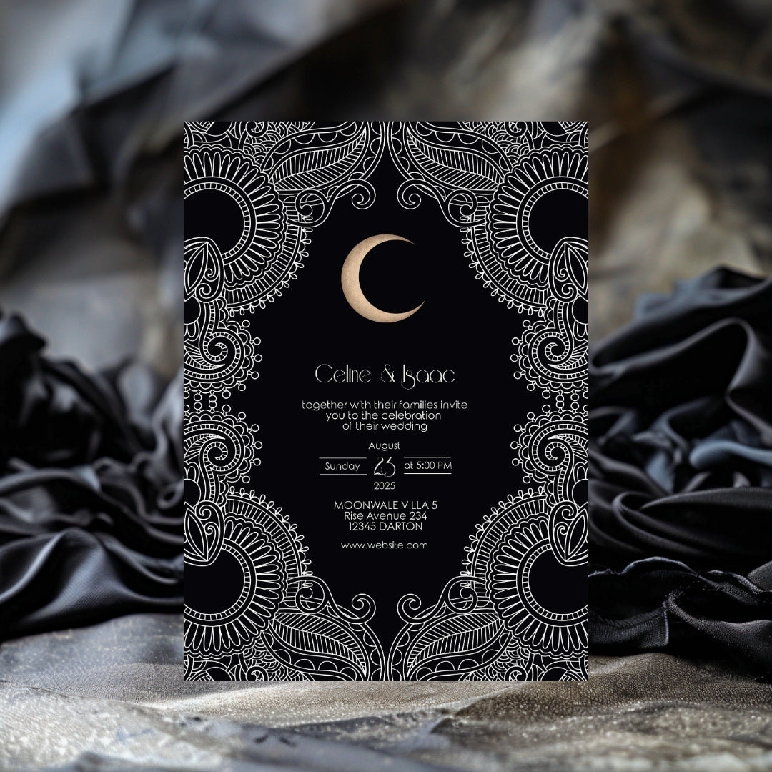 Celestial Moon Paisley Elegance Wedding Invitation