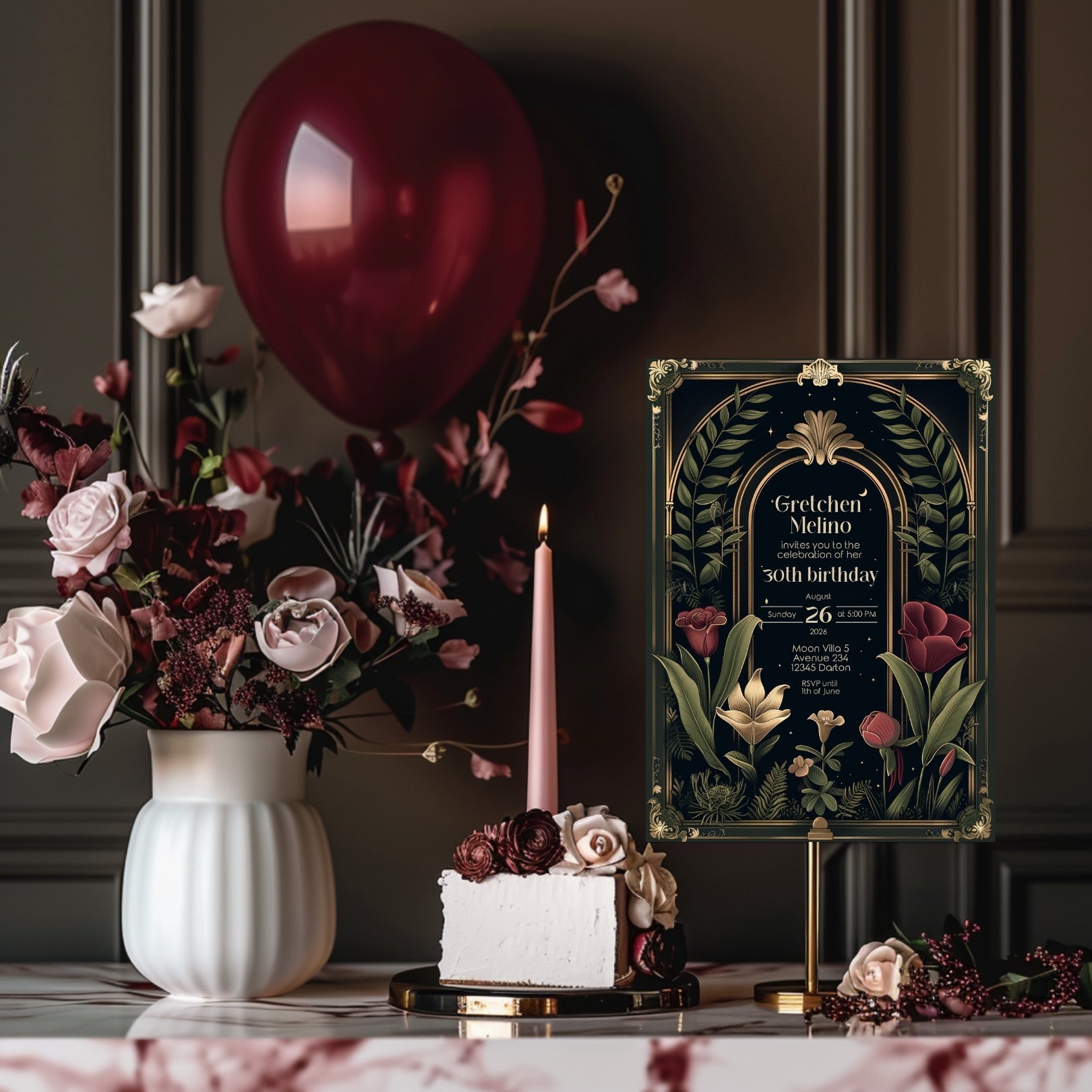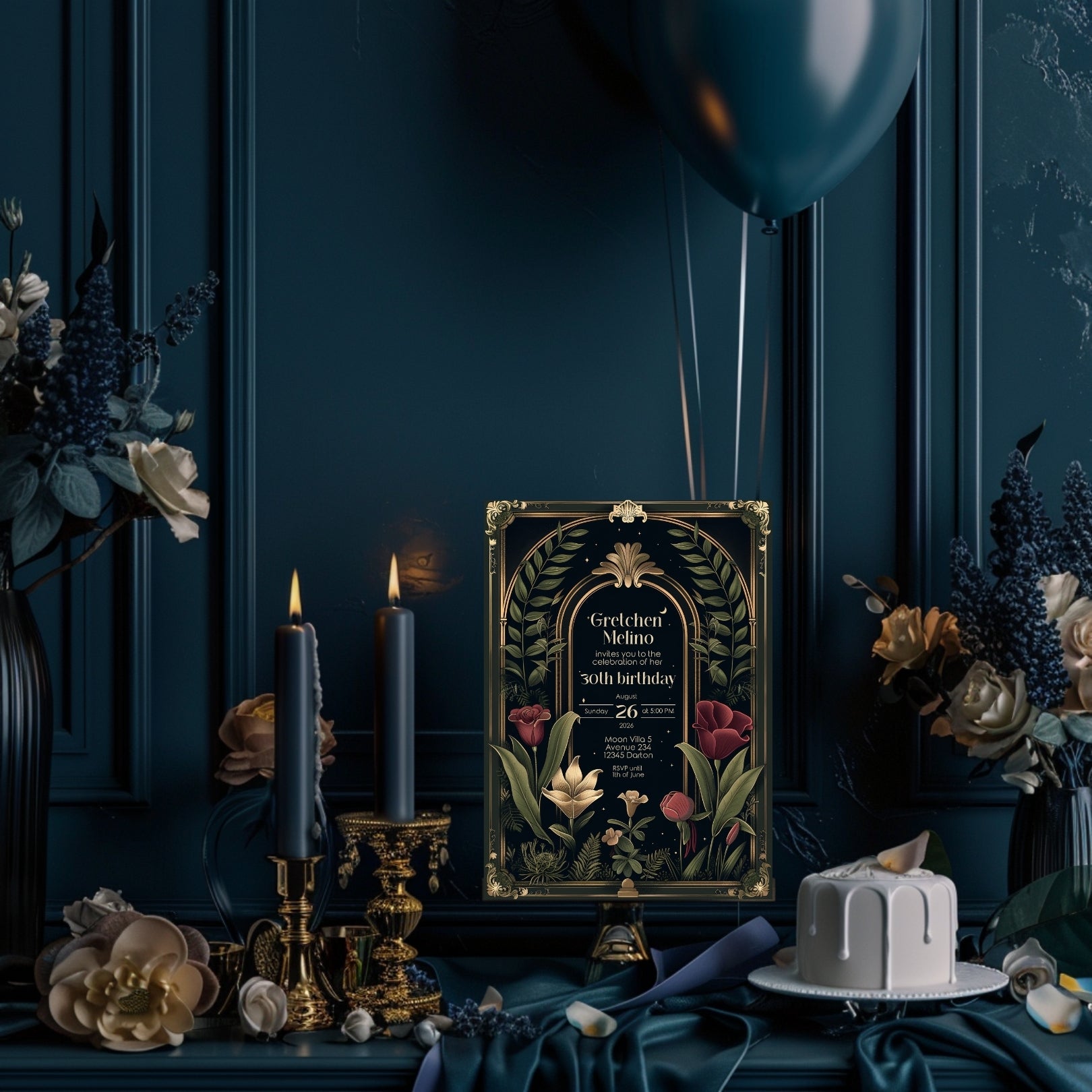Dark Academia Art Deco Birthday Invitation - Elegant Gothic Celebration