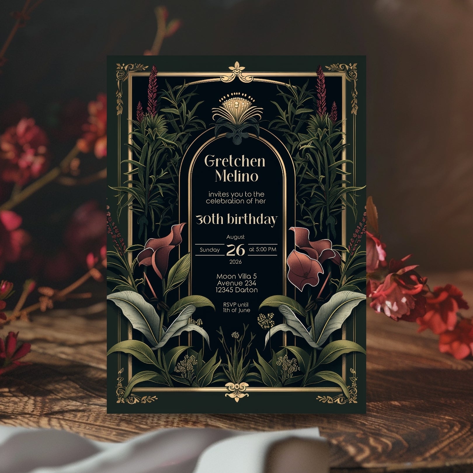 Elevate your event with this Dark Academia Botanical Birthday Invitation, a perfect choice for those who appreciate the elegance of vintage and the depth of scholarly aesthetics. This invitation is designed to set the tone for a sophisticated and memorable celebration.