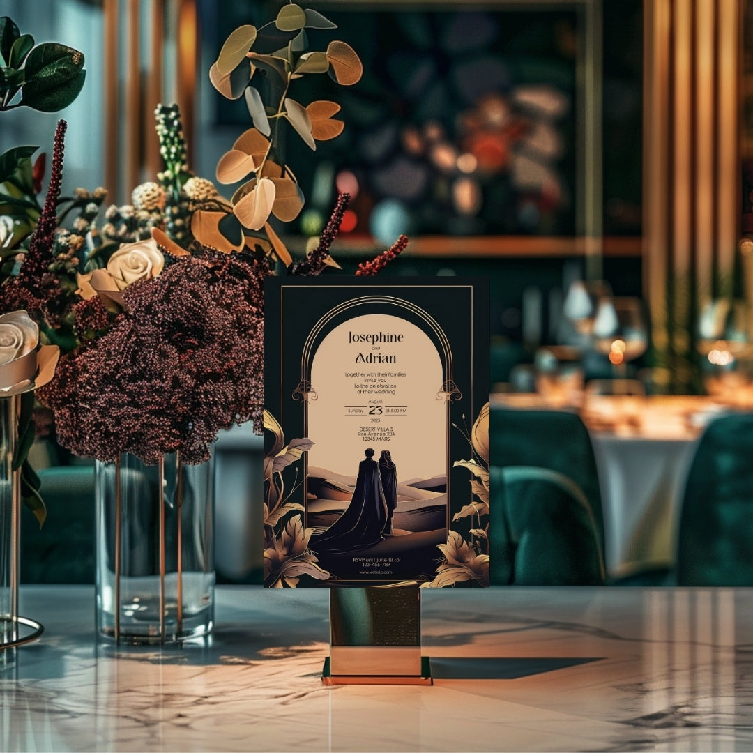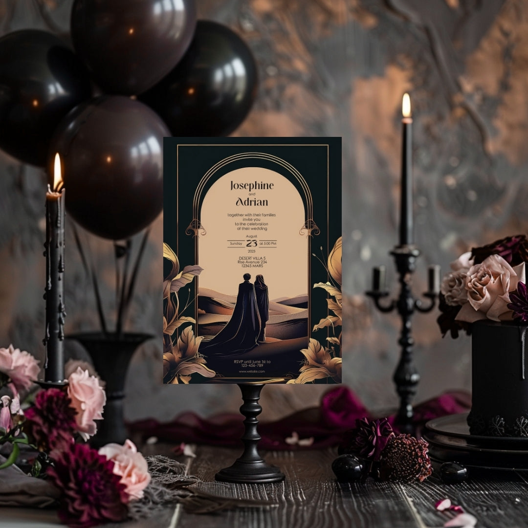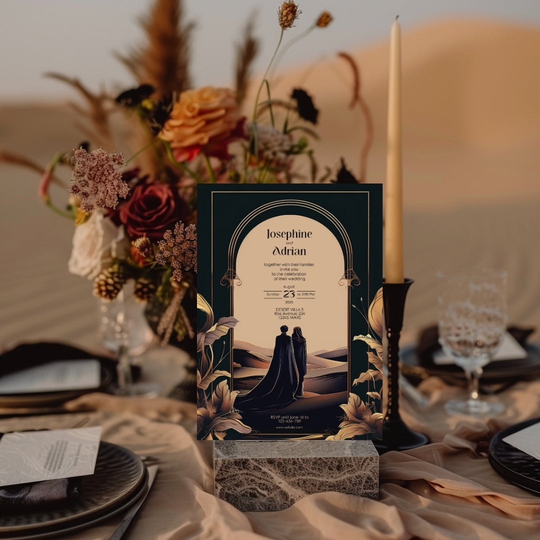 Dark Desert Emperor Couple Floral Arch Wedding Invitation