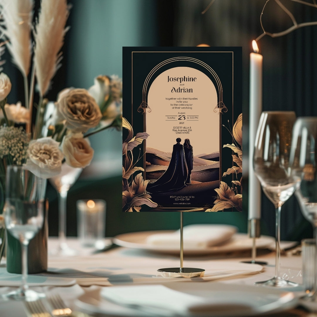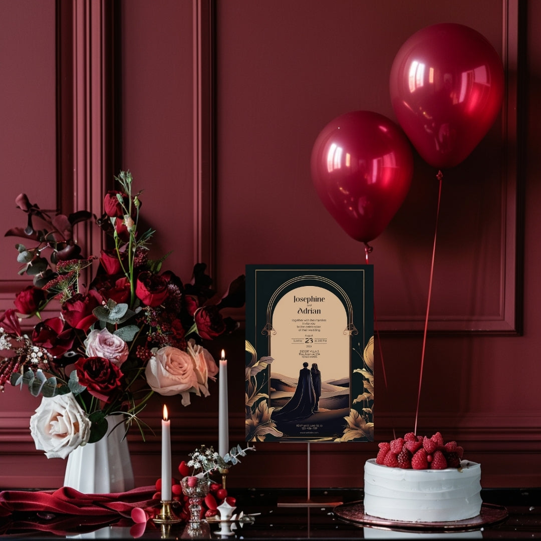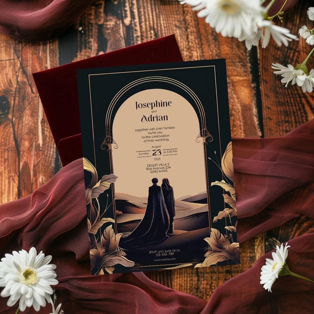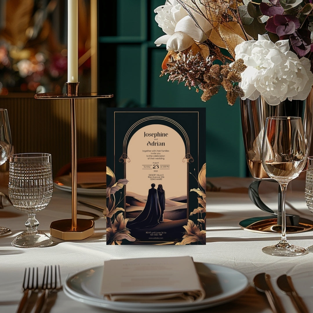 Dark Desert Emperor Couple Floral Arch Wedding Invitation