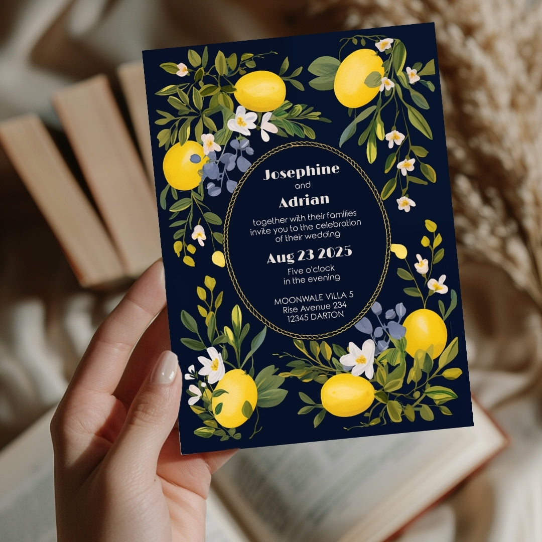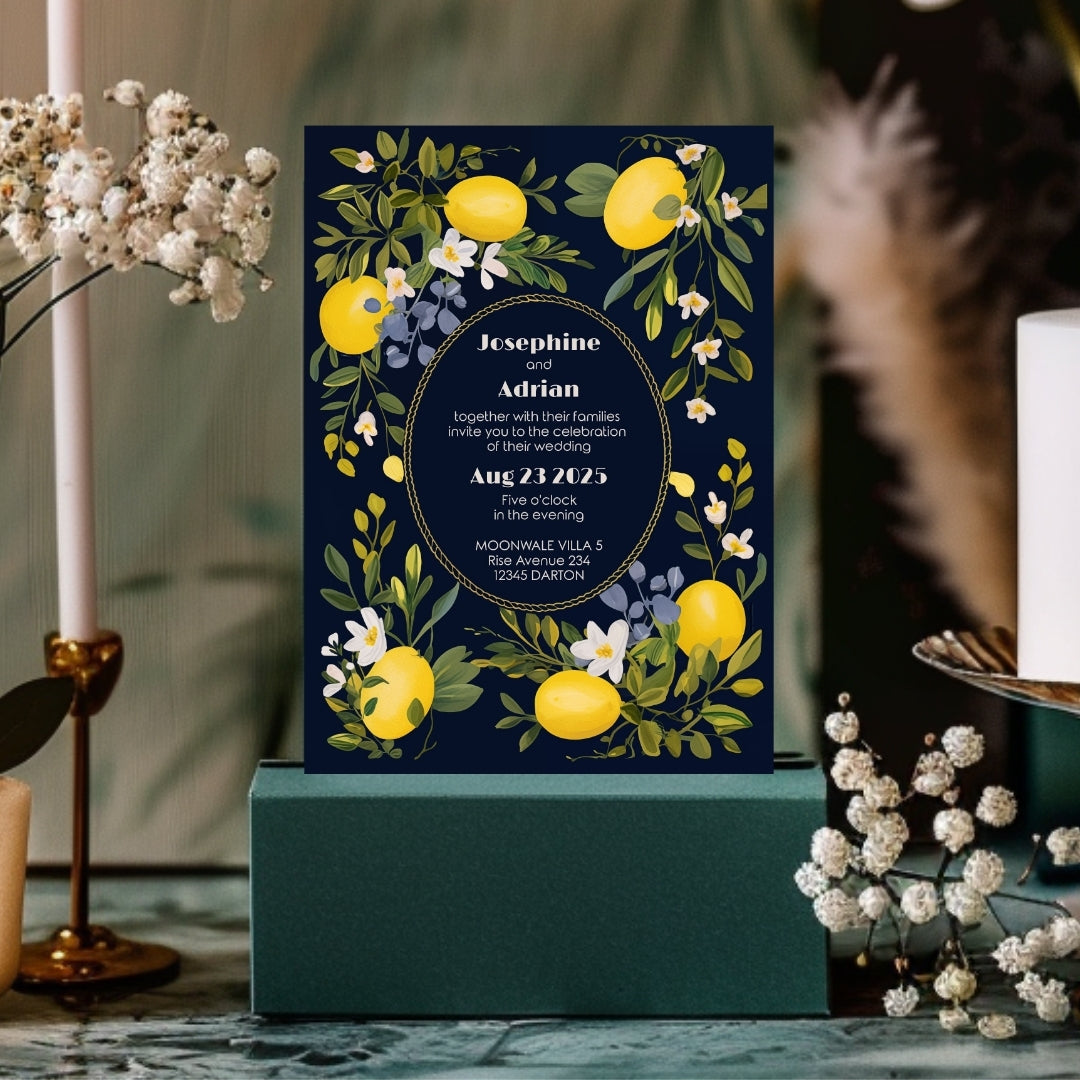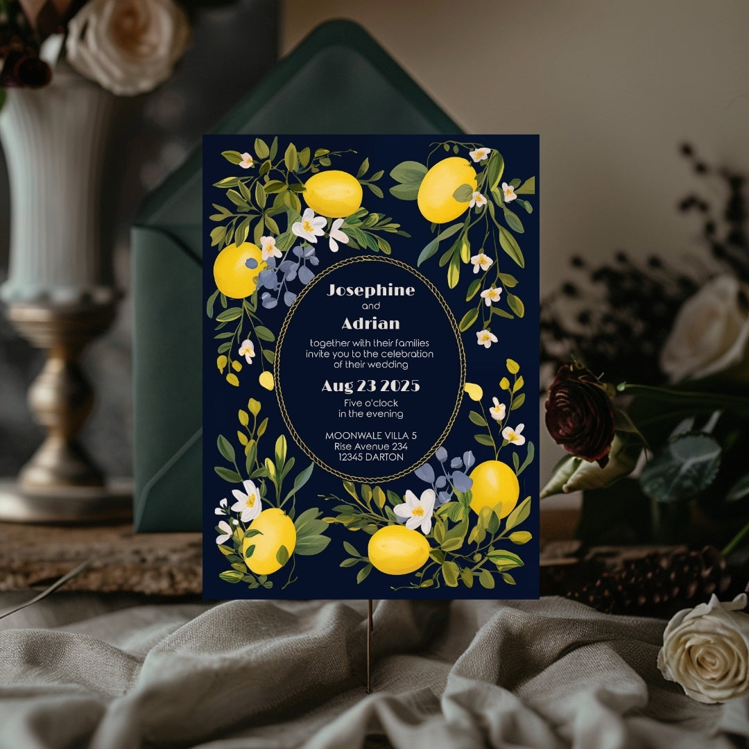 Dark Mediterranean Lemon Frame Wedding Invitation