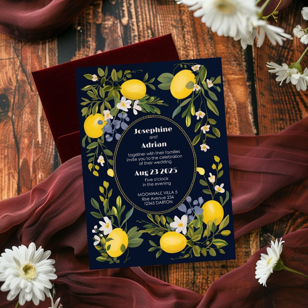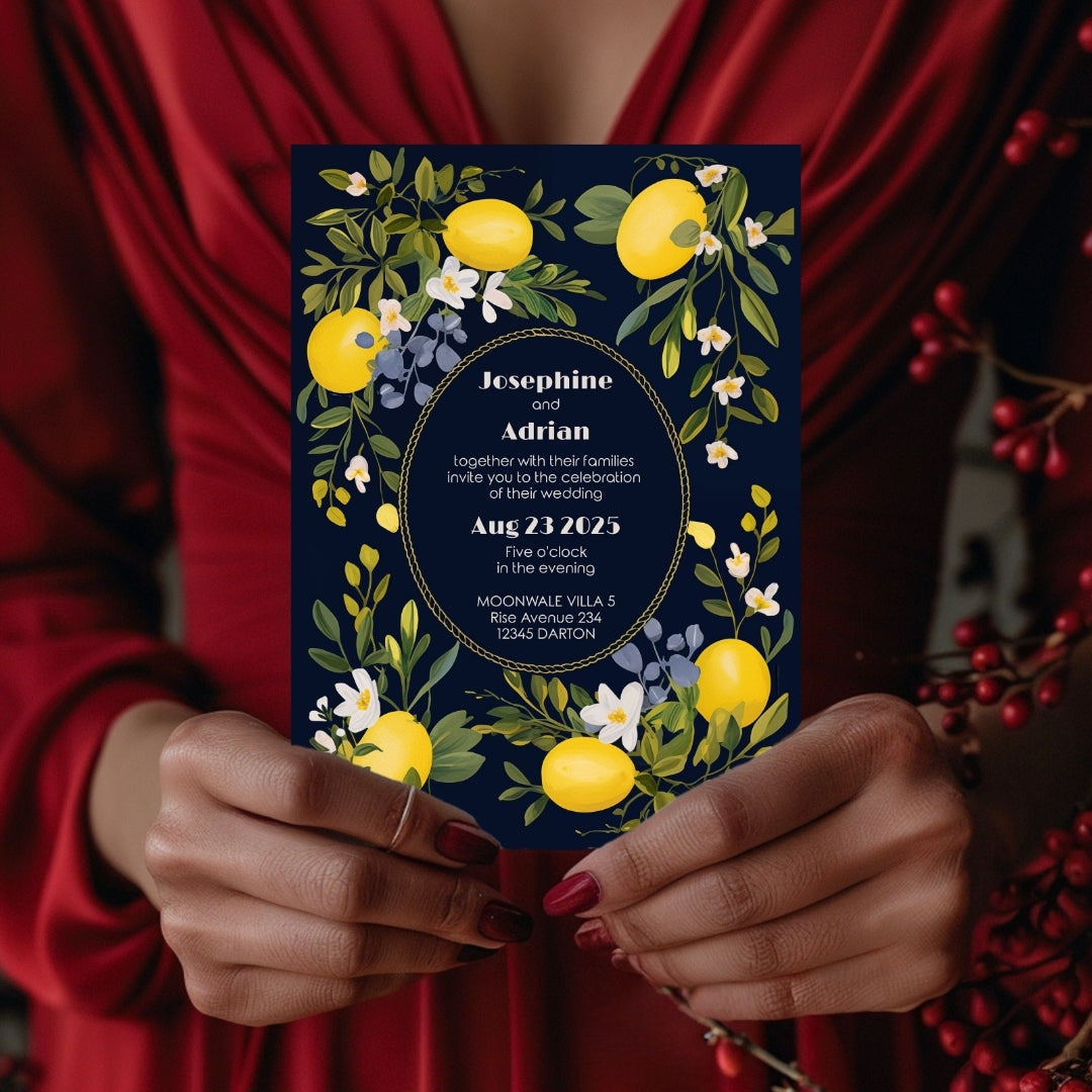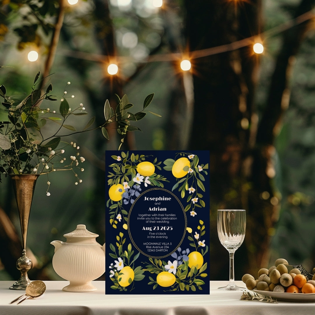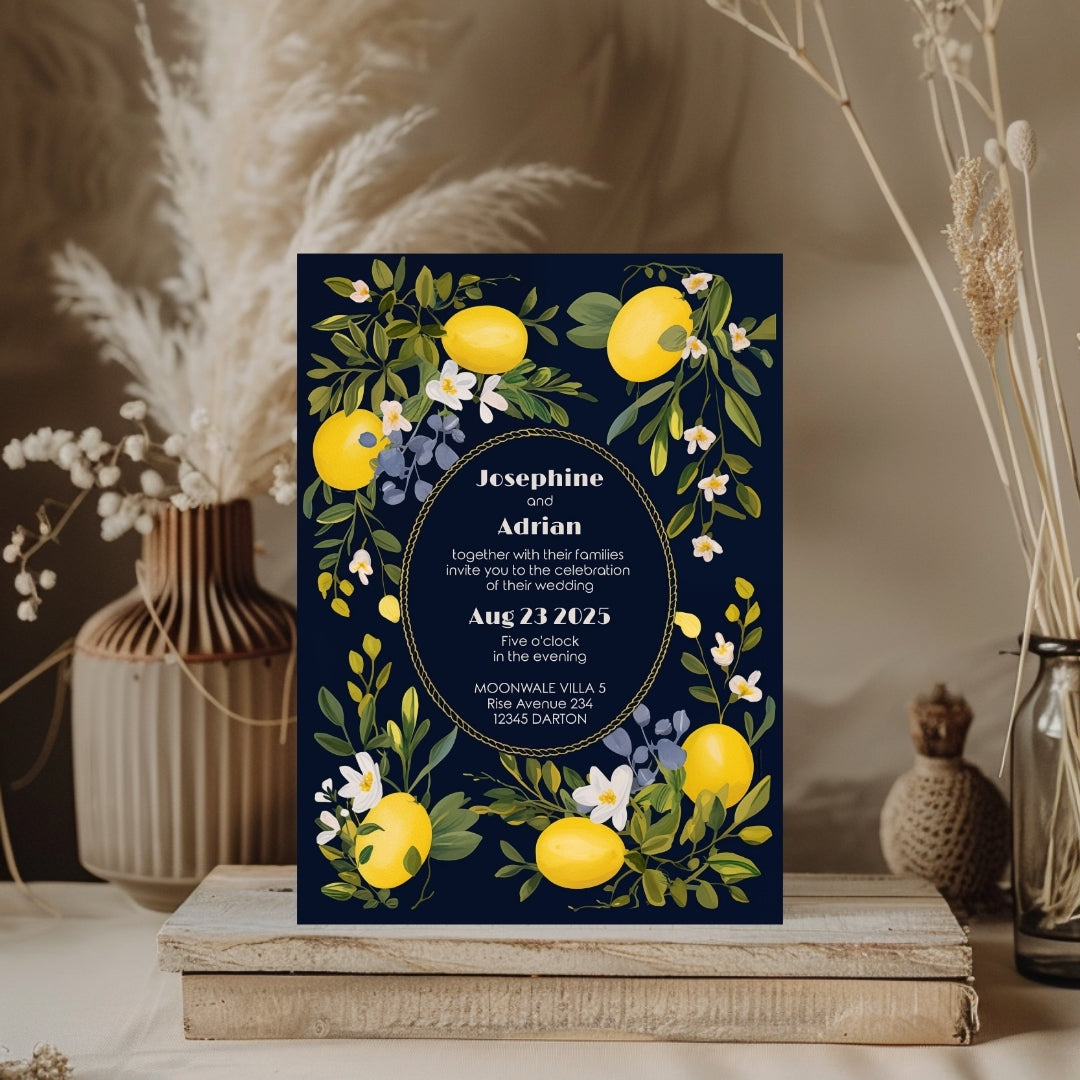 Dark Mediterranean Lemon Frame Wedding Invitation
