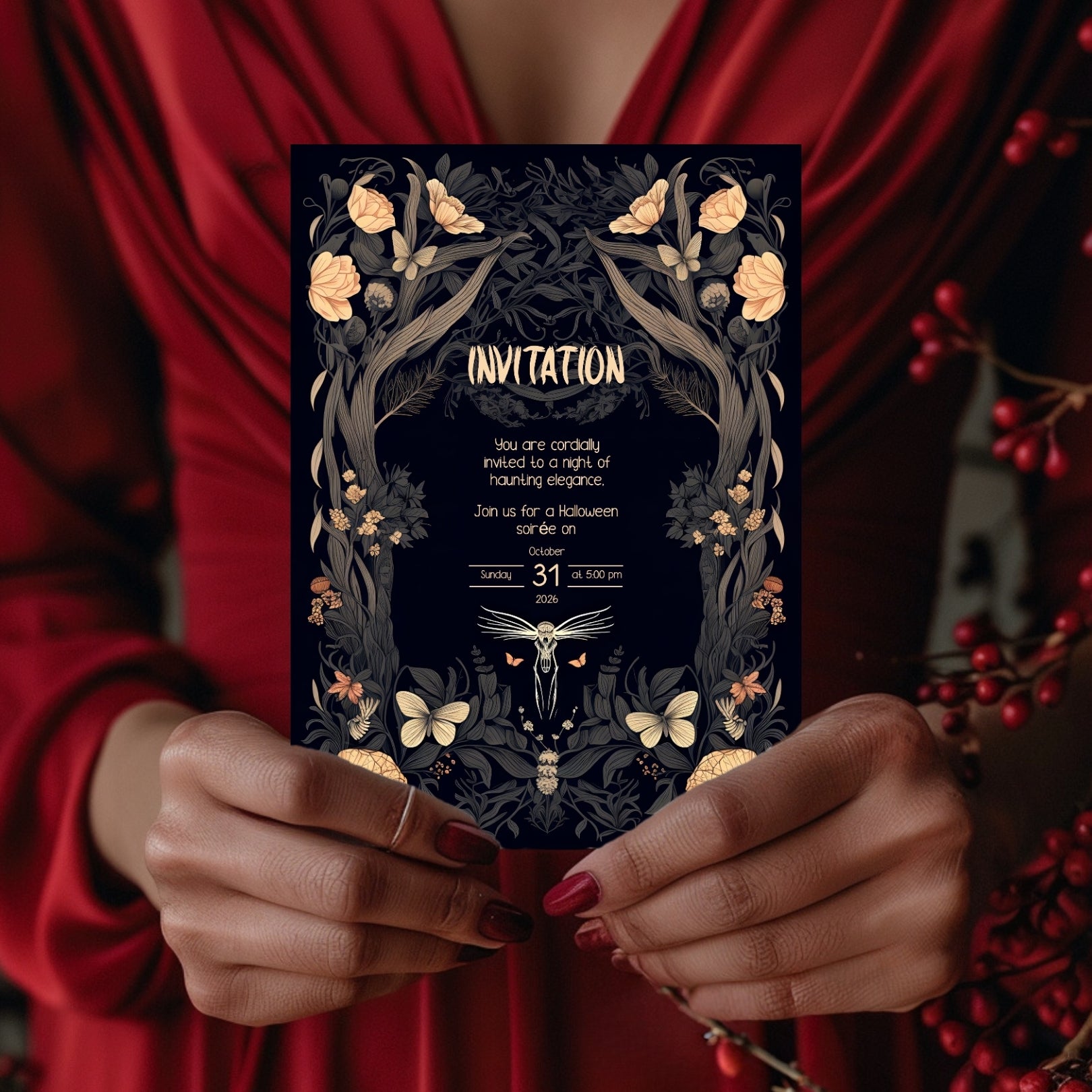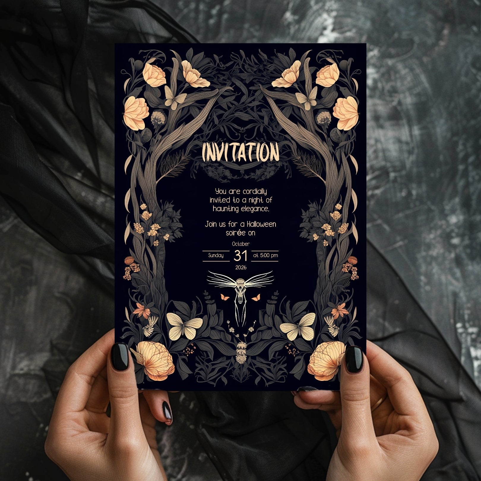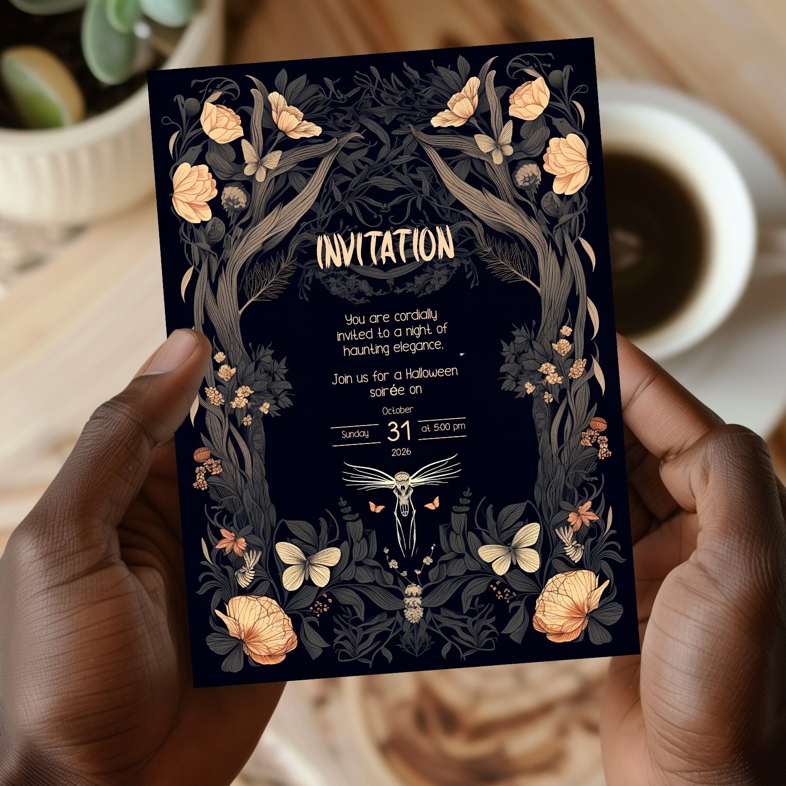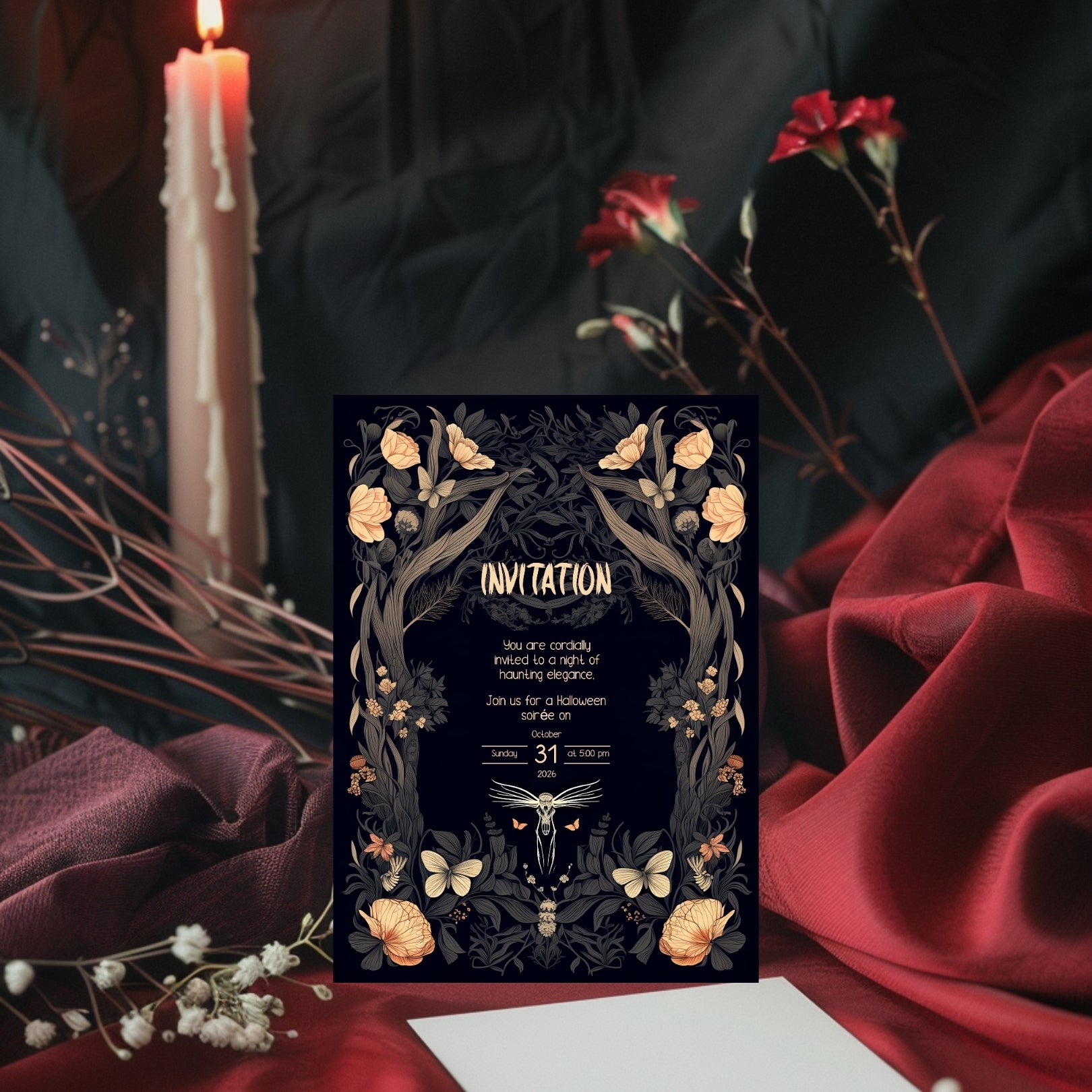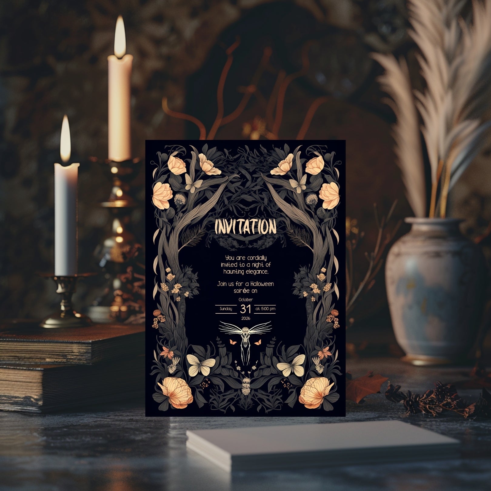 ✔️𝙑𝙚𝙧𝙨𝙖𝙩𝙞𝙡𝙚 𝙐𝙨𝙚: Ideal for Halloween parties, mystical gatherings, or any event that embraces both the spooky and the serene, this invitation will transport your guests to a world of haunting beauty.