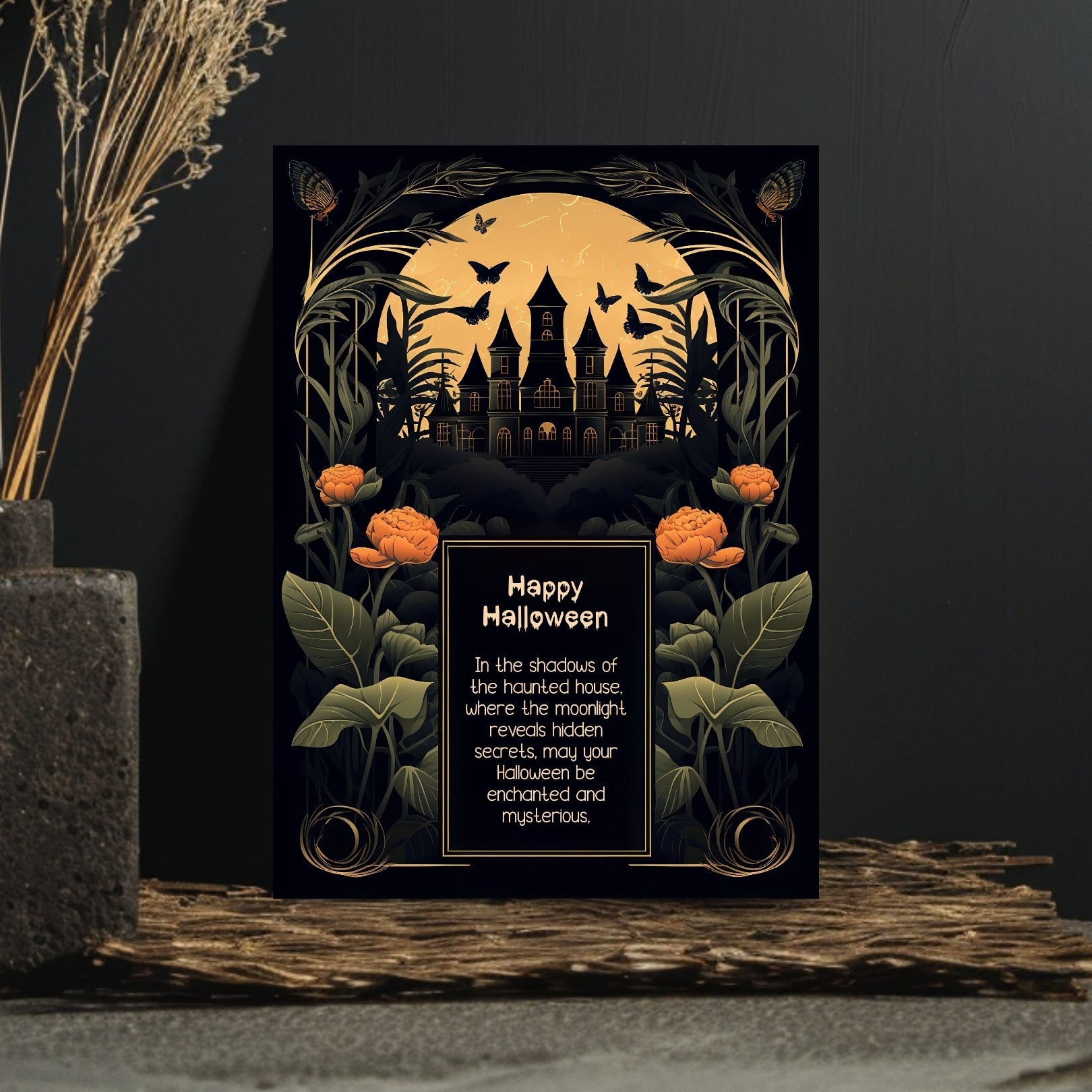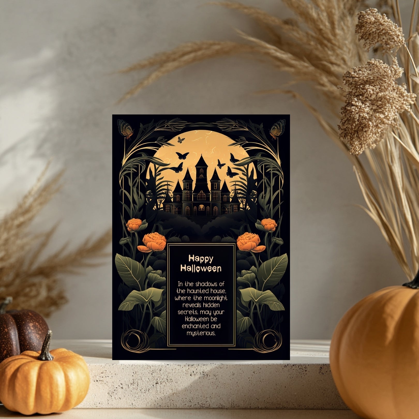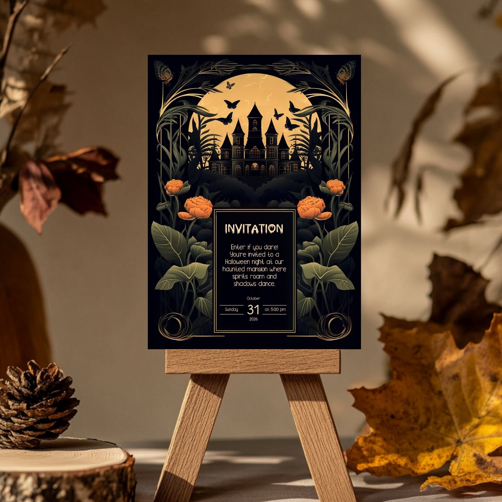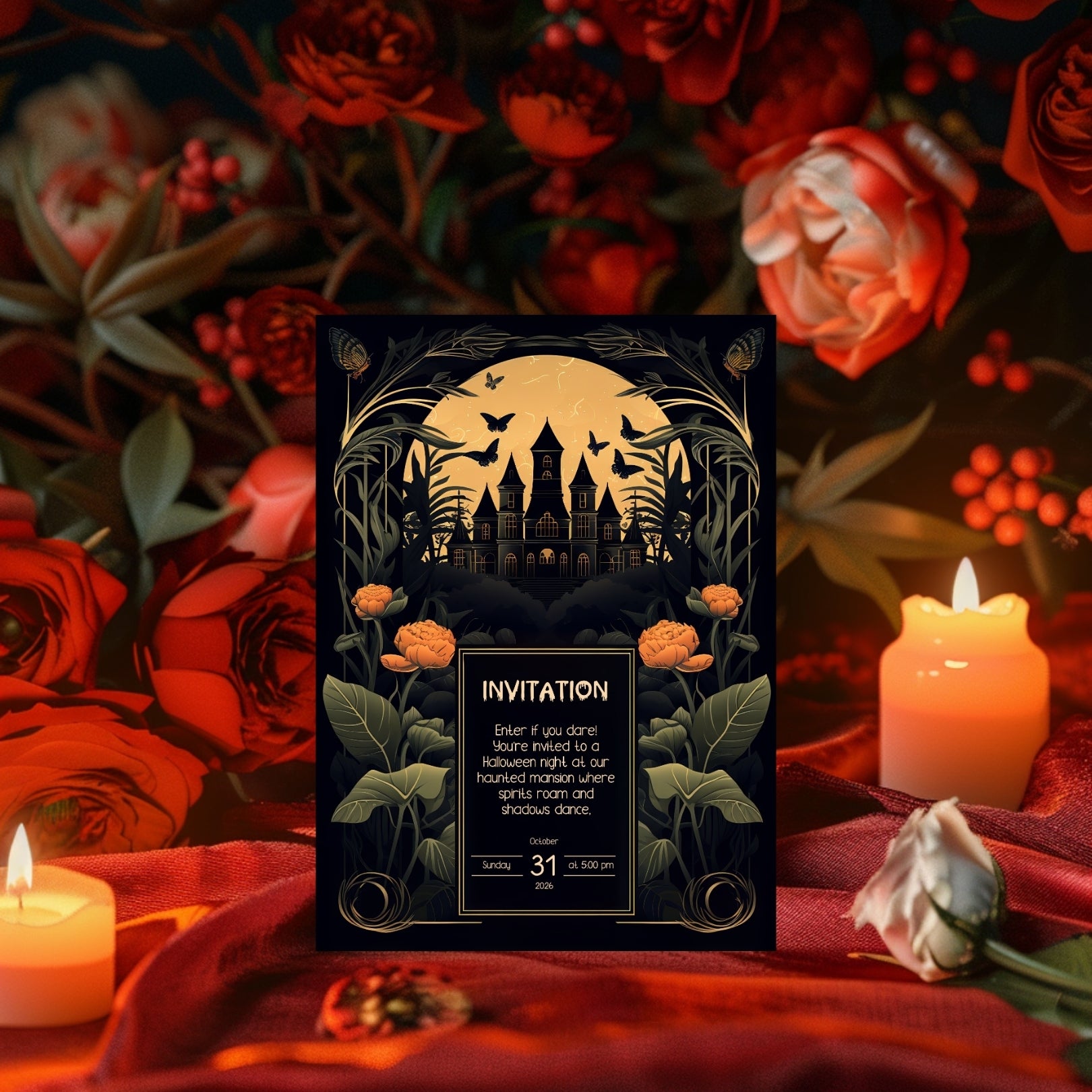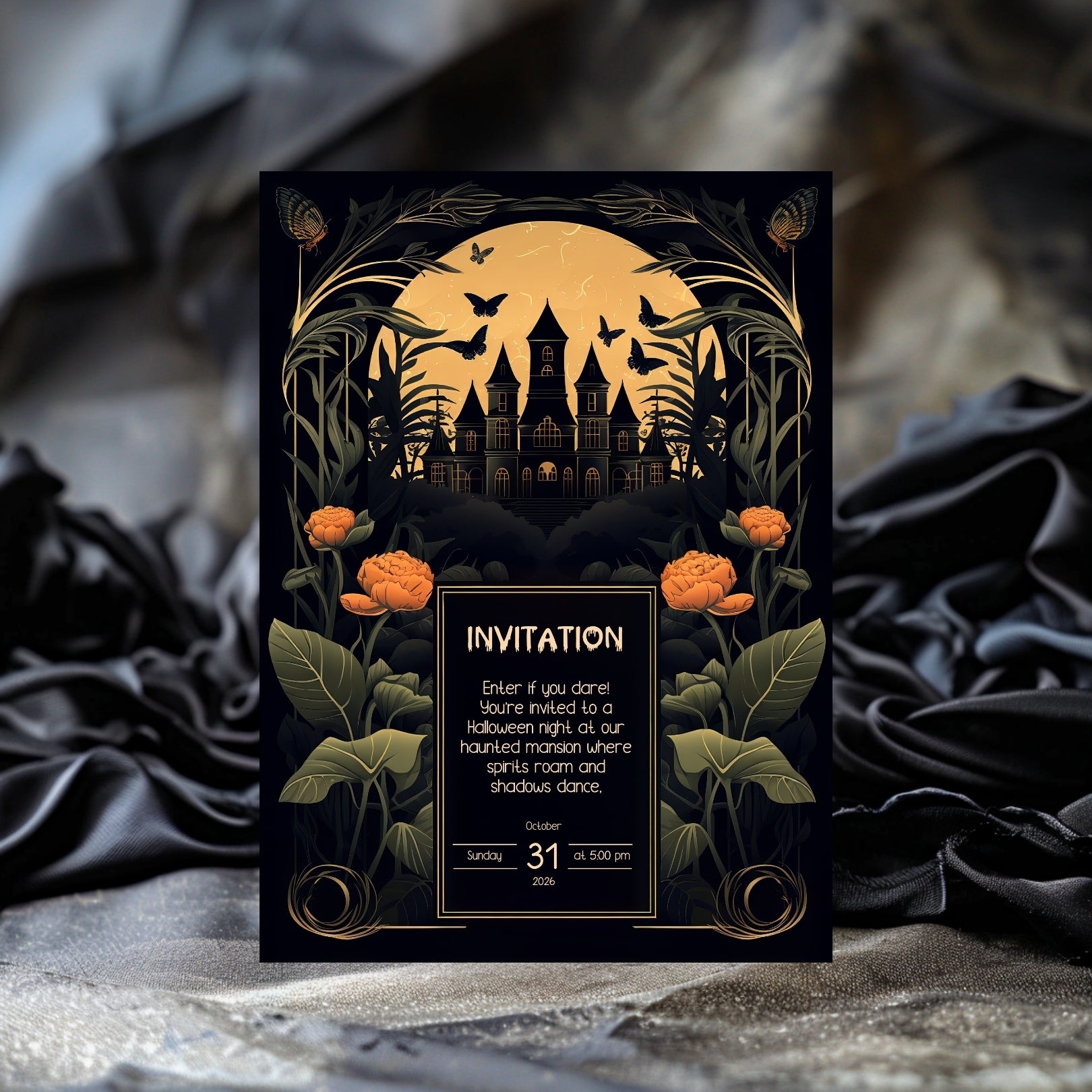 Gothic Art Nouveau Halloween Invitation - Haunted Mansion Design for Spooky Events