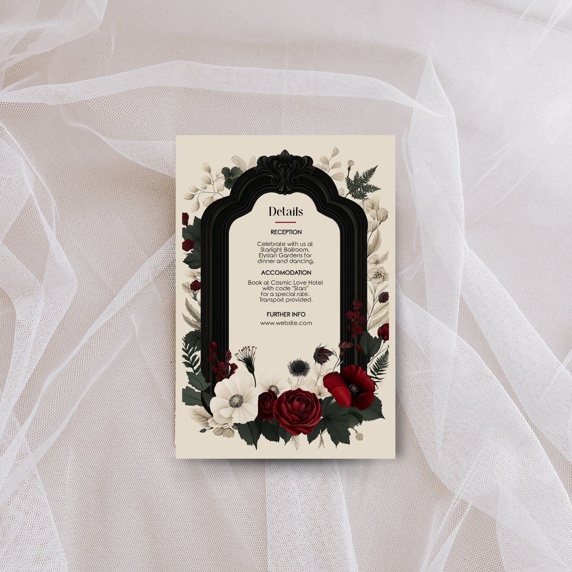 Gothic Romance Wedding Invitation Set - Gothic Style, Arch and Flowers, Editable 8 items