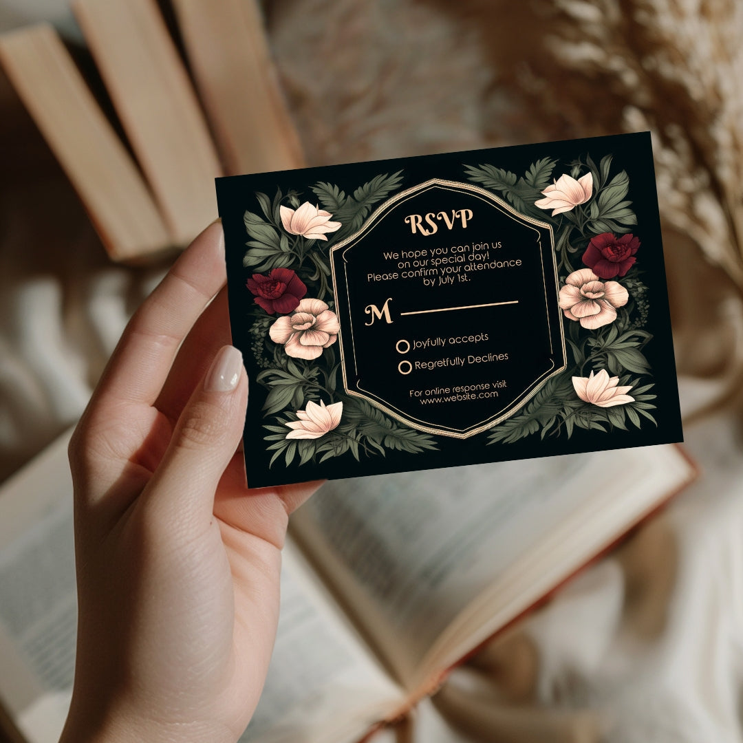 Invitation Card: https://www.goddesspaperie.com/products/gothic-botanical-elegance-invitation-editable-template-personalize-with-corjl-vintage-roses-perfect-for-wedding-bridal-shower-or-party