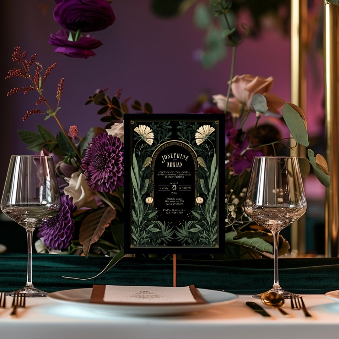 ✨ Make Your Event Unforgettable with our Dark Art Deco Botanical Invitation! This elegant digital template is perfect for weddings, birthdays, anniversaries, or any special event. Featuring intricate arch designs and lush botanical elements, this invitation adds sophistication and charm to your occasion. ✨