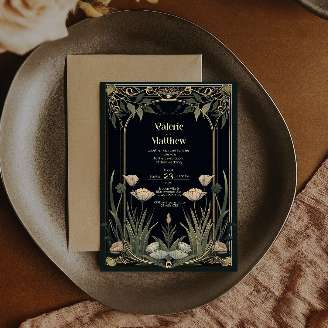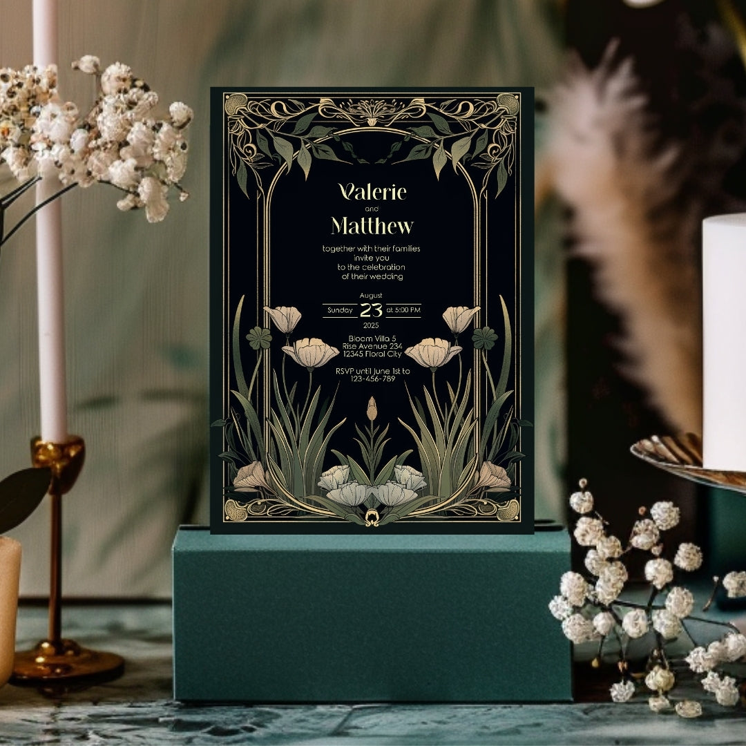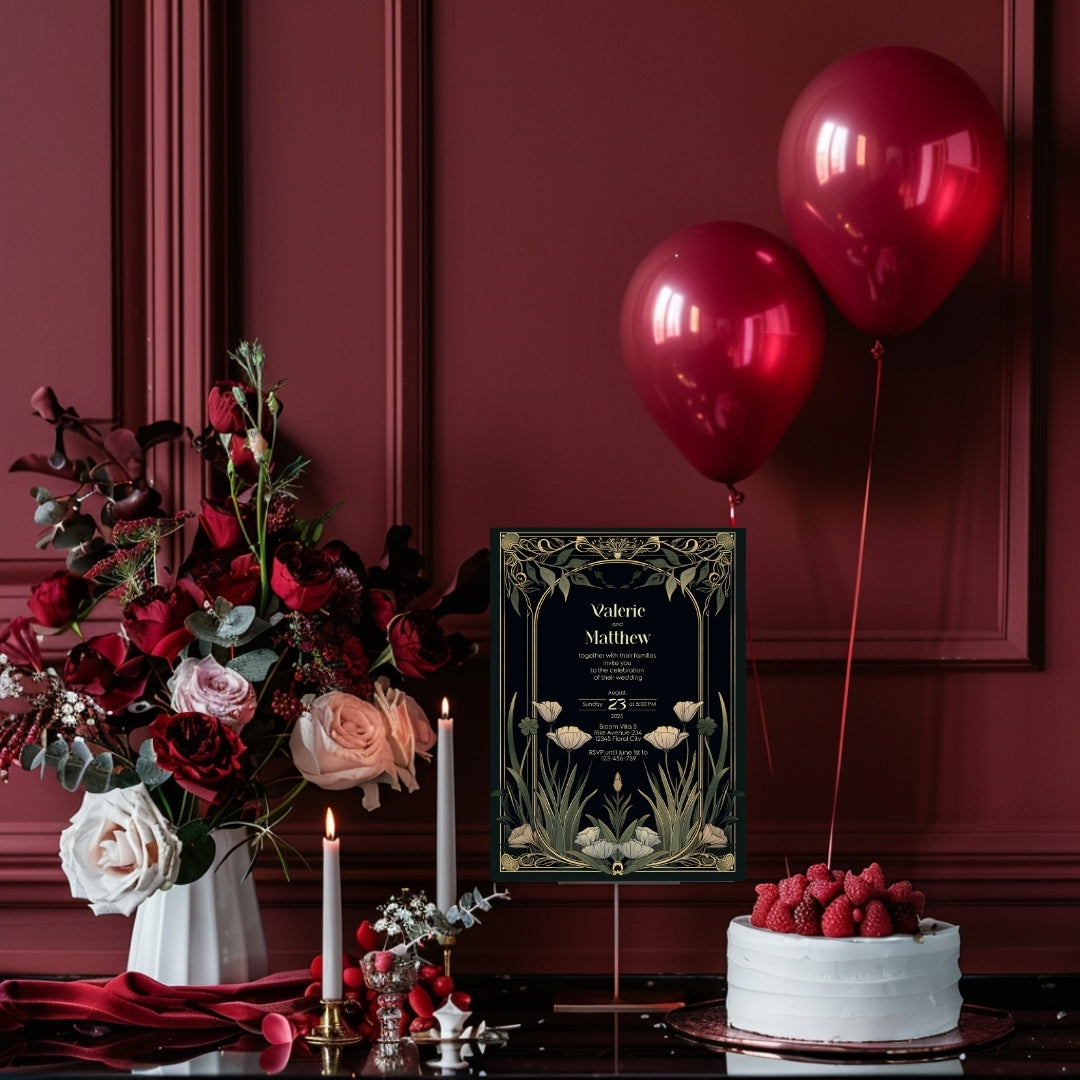 Step into the grandeur of yesteryear with our Classic Art Deco Invitation Template, designed to imbue your upcoming event with the timeless elegance of the 1920s. The sleek, dark background sets a dramatic stage for the gold-accented arches and the delicate beauty of white tulips, creating a stunning contrast that exudes sophistication. Perfect for a vintage-themed wedding, an artful anniversary celebration, or a birthday bash with a twist of old-school glamour, this template is versatile and breathtaking. With instant access to edit and personalize via Corjl, you can tailor every detail to your liking, ensuring your invitations are as unique as your event. Invite your guests to partake in the charm and splendor of an unforgettable celebration with this beautifully designed digital invitation.