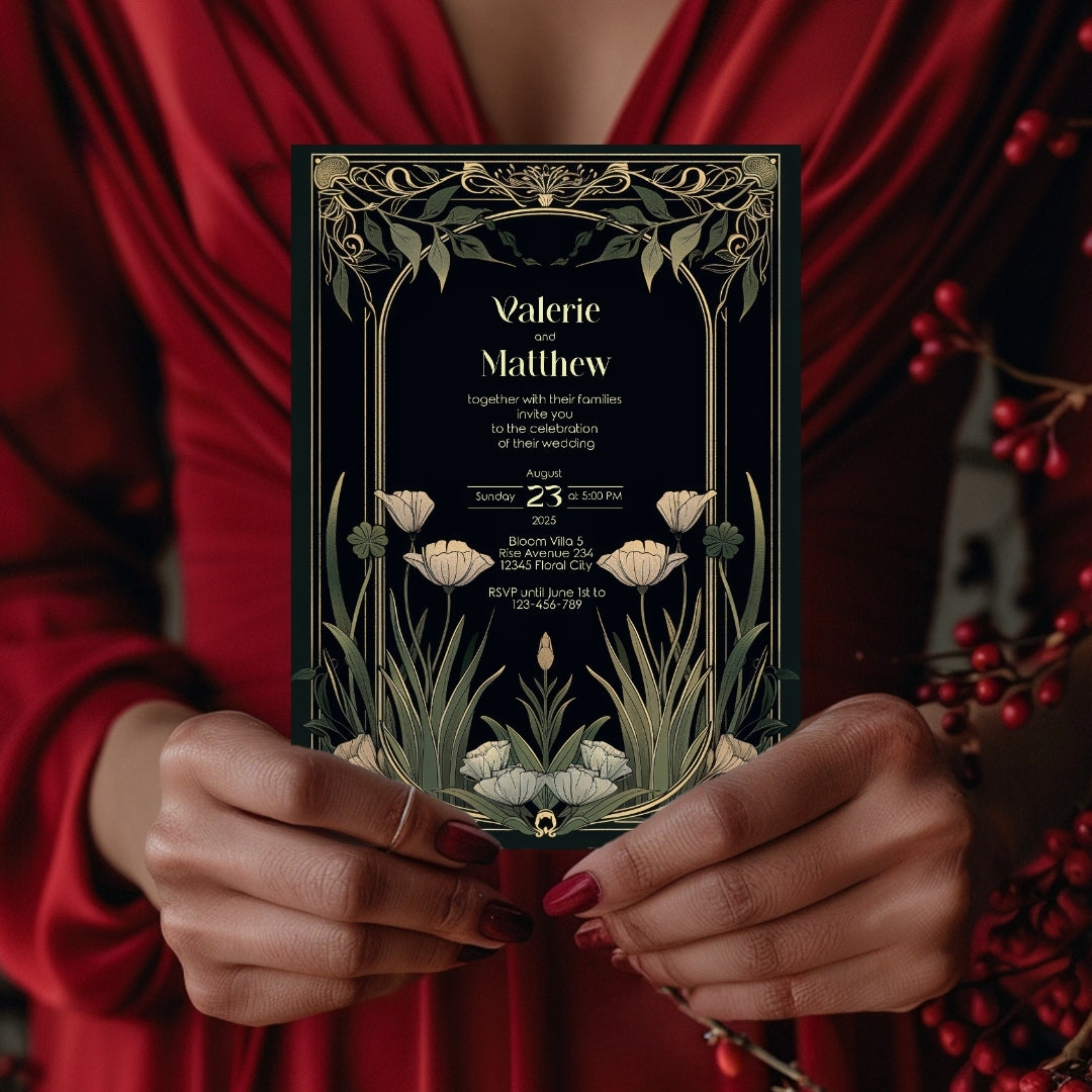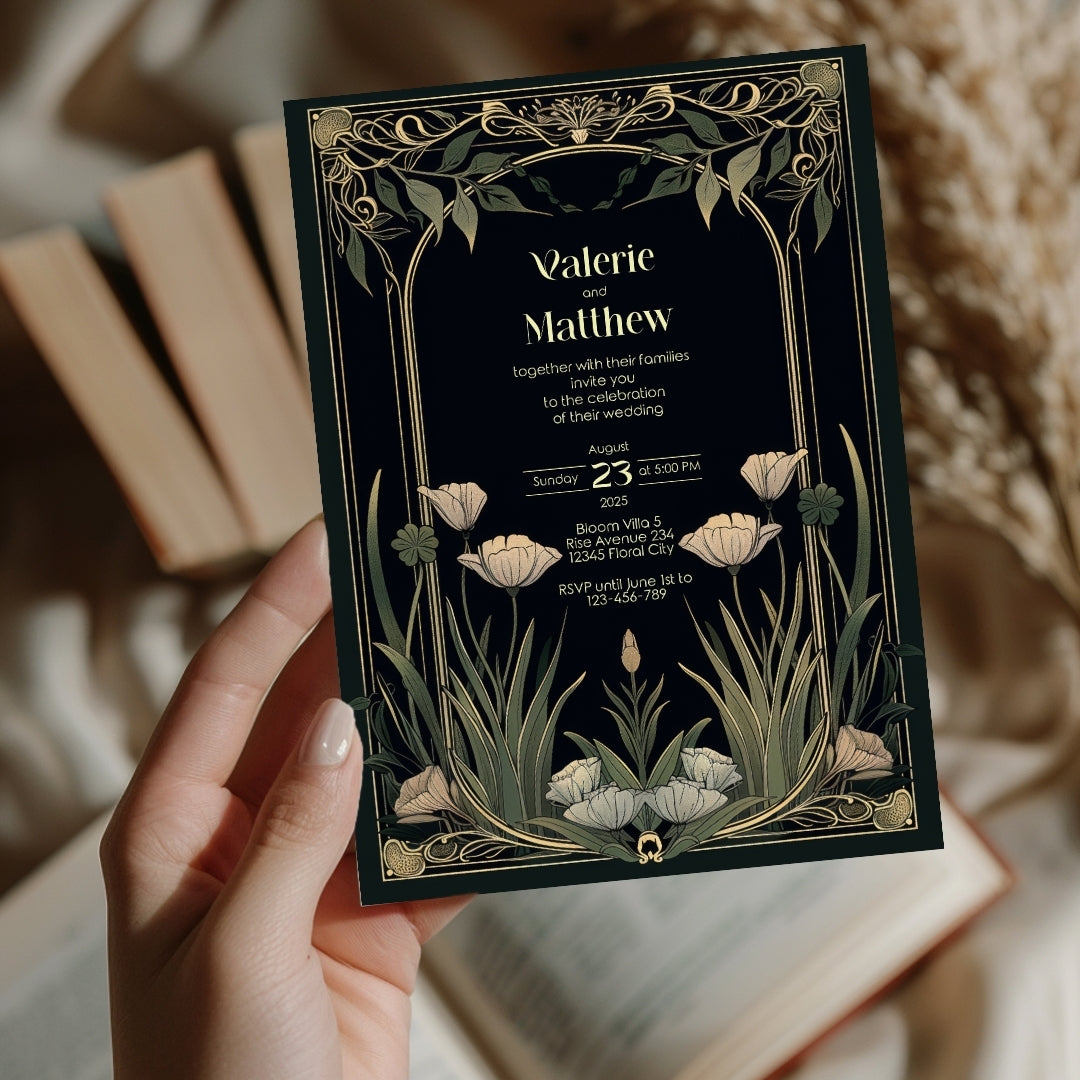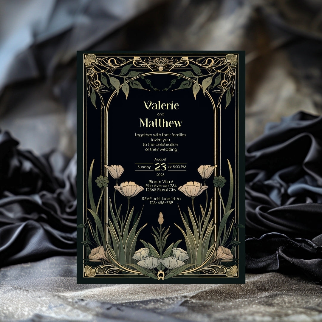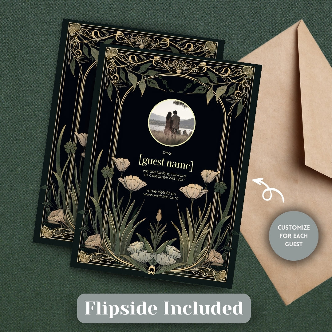 Step into the grandeur of yesteryear with our Classic Art Deco Invitation Template, designed to imbue your upcoming event with the timeless elegance of the 1920s. The sleek, dark background sets a dramatic stage for the gold-accented arches and the delicate beauty of white tulips, creating a stunning contrast that exudes sophistication. Perfect for a vintage-themed wedding, an artful anniversary celebration, or a birthday bash with a twist of old-school glamour, this template is versatile and breathtaking. With instant access to edit and personalize via Corjl, you can tailor every detail to your liking, ensuring your invitations are as unique as your event. Invite your guests to partake in the charm and splendor of an unforgettable celebration with this beautifully designed digital invitation.