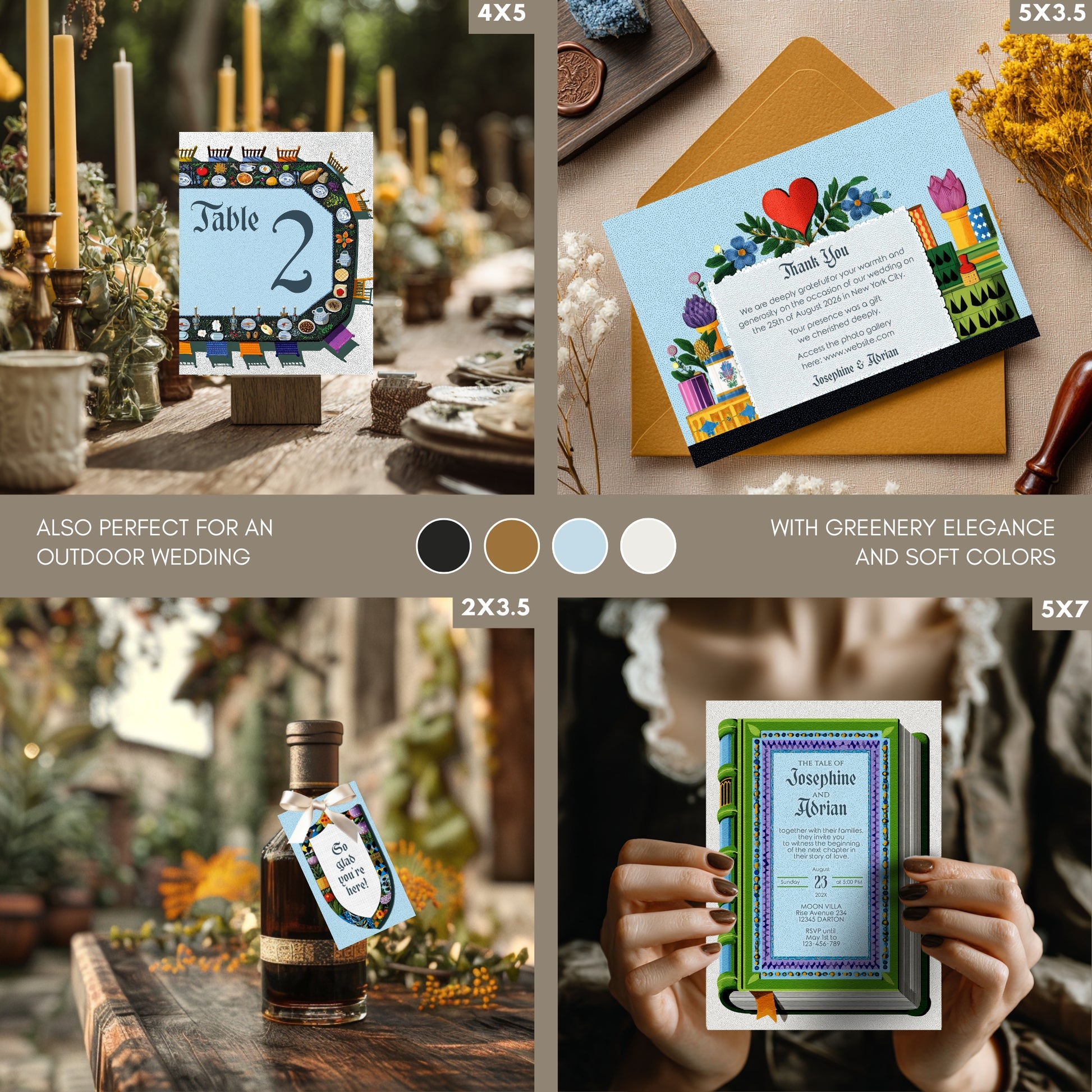 Medieval Fantasy Wedding Invitation Bundle, Vintage Book Cover Design, Editable 8 items