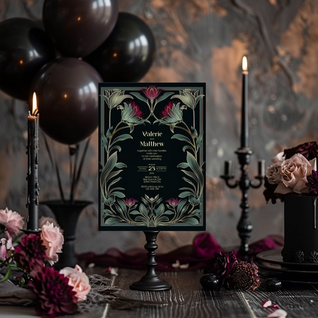 • Choose card stock or specialty papers that enhance the dark, gothic aesthetic of the design.