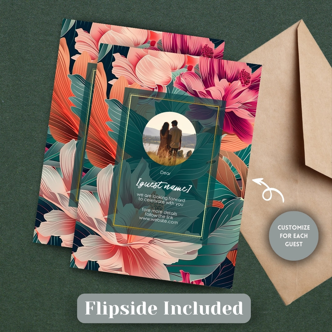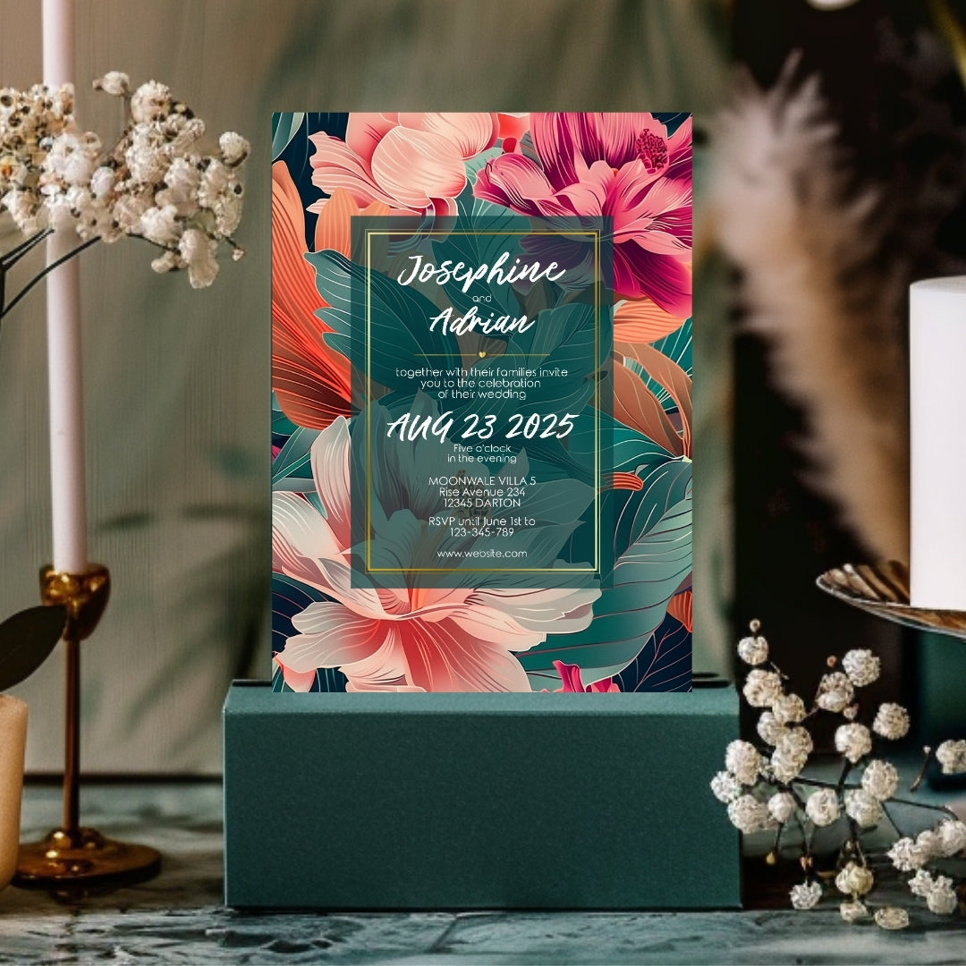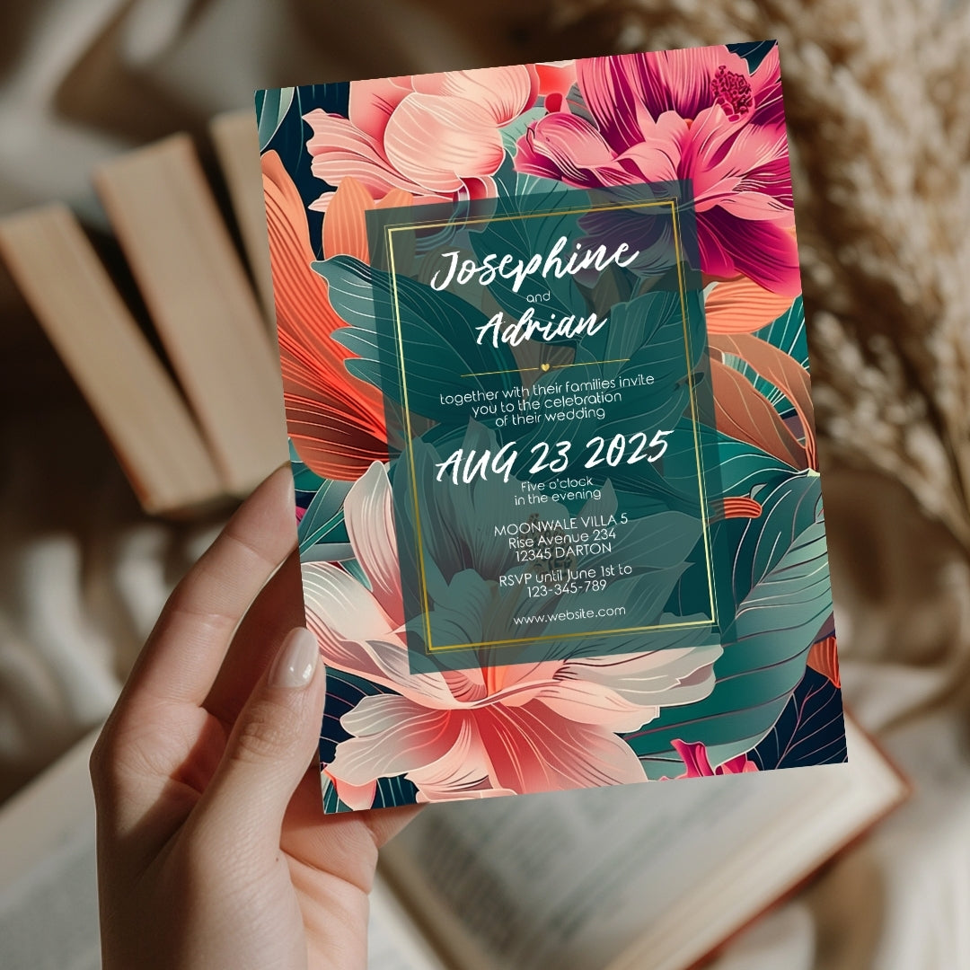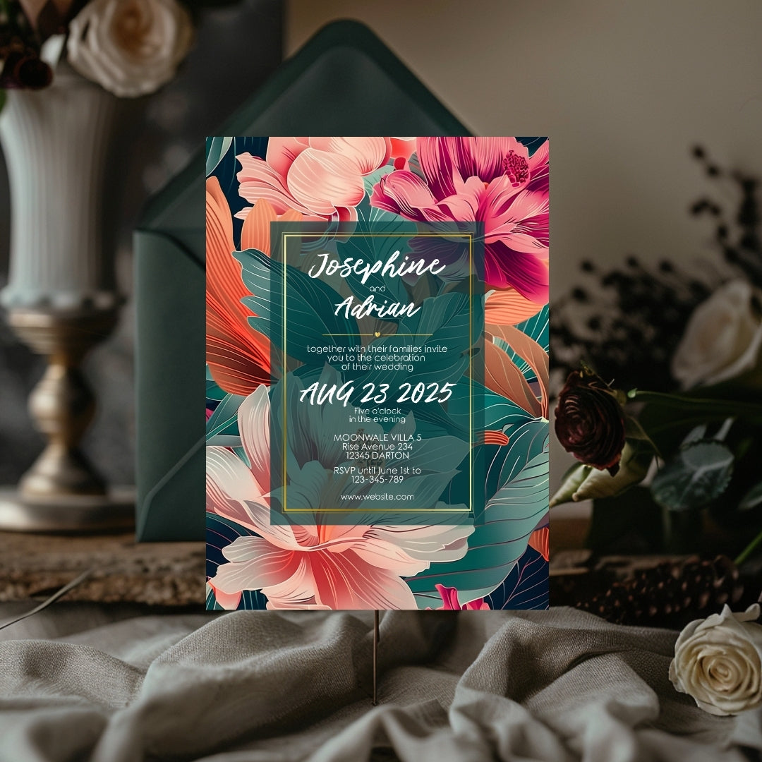 Inviting you to step into a garden of elegance with our Floral Garden Party Invitation, a digital template that is a perfect prelude to your chic soiree. Ideal for weddings, anniversaries, milestone birthdays, or any event that calls for a touch of class, this invitation marries the beauty of floral exuberance with a sophisticated aesthetic. Vivid flowers in shades of pink and coral bloom against a serene teal backdrop, framed by a sleek geometric border that whispers the glamour of a bygone era. Tailor the details with ease on Corjl and choose between a high-quality digital format to share via email or a print-ready file for a tangible memento of your upcoming festivity.