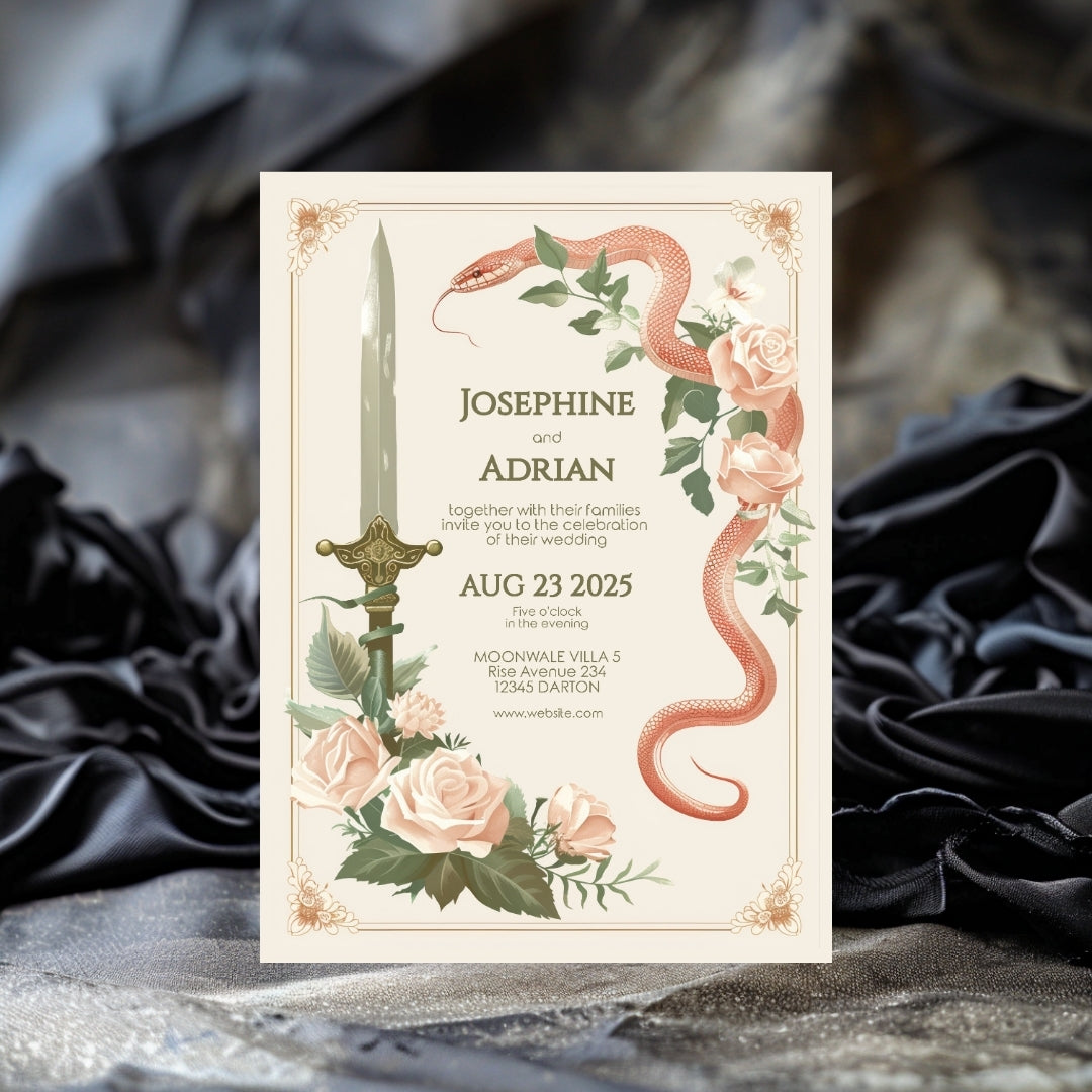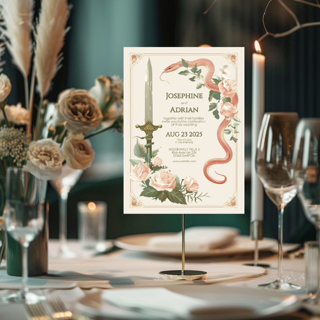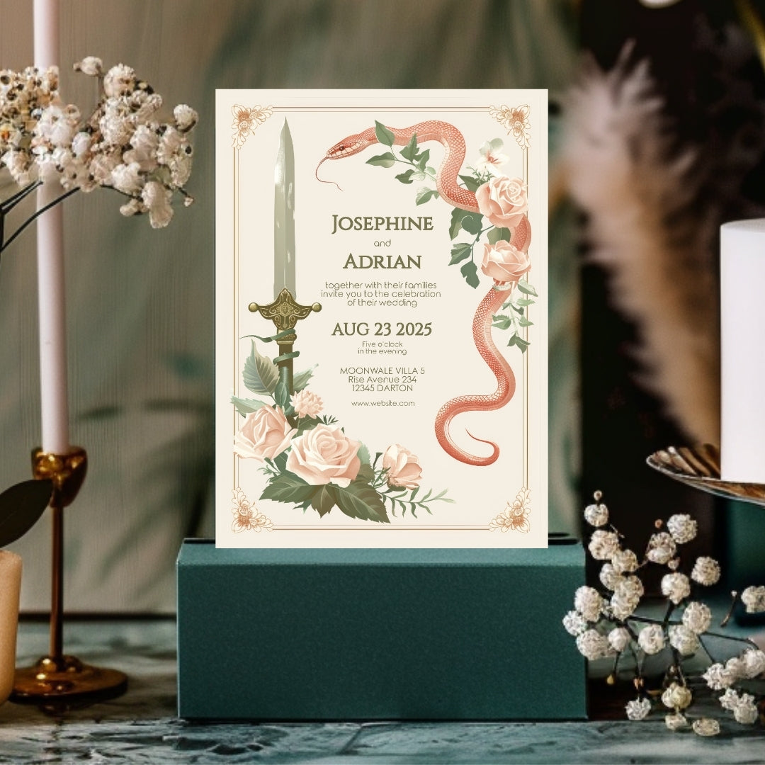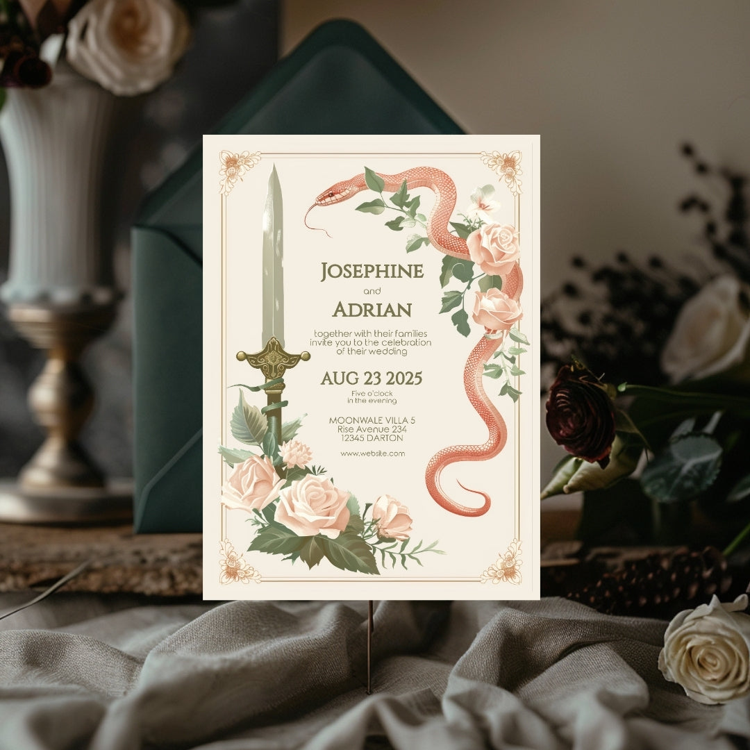 Vintage Serpent Floral Sword Wedding Invitation