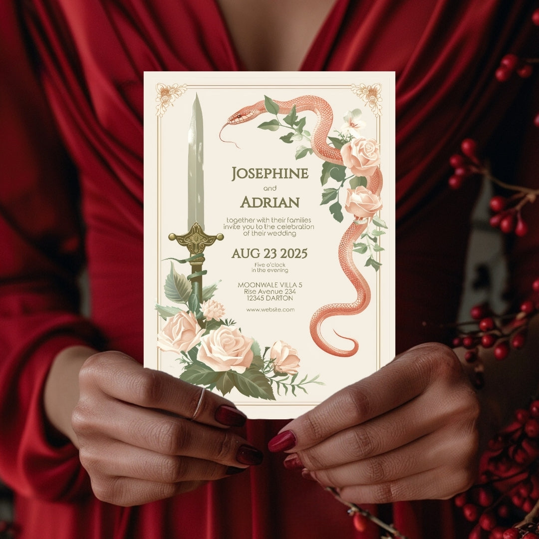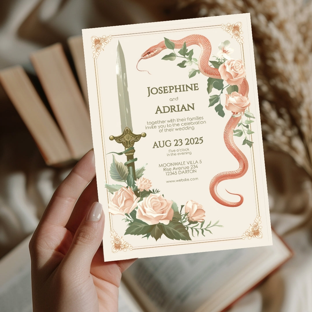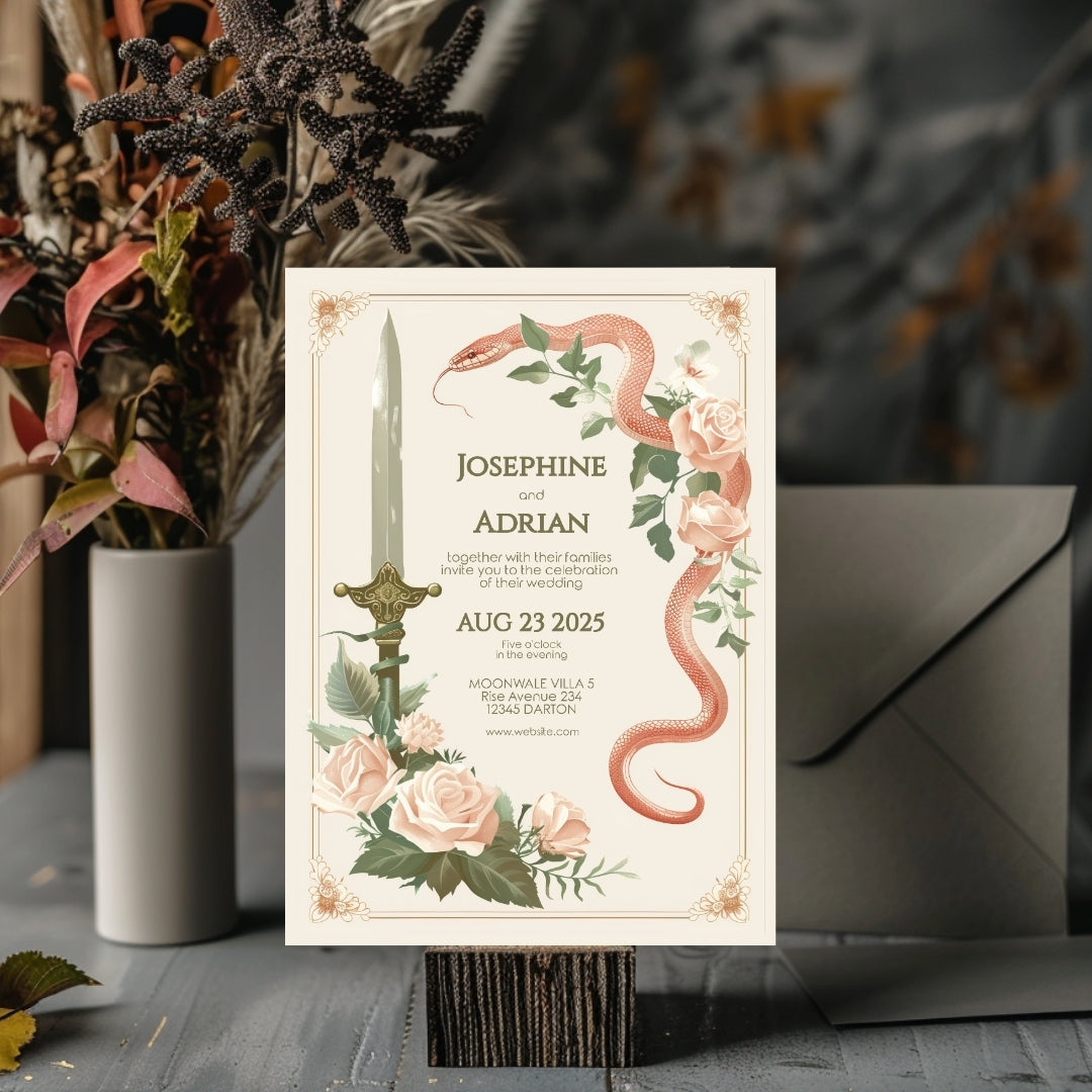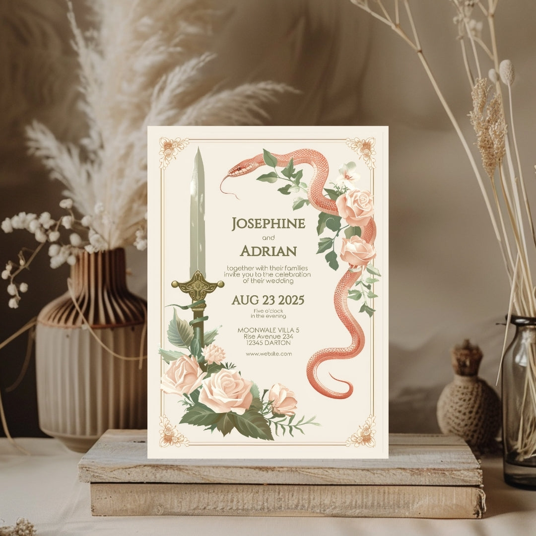 Vintage Serpent Floral Sword Wedding Invitation