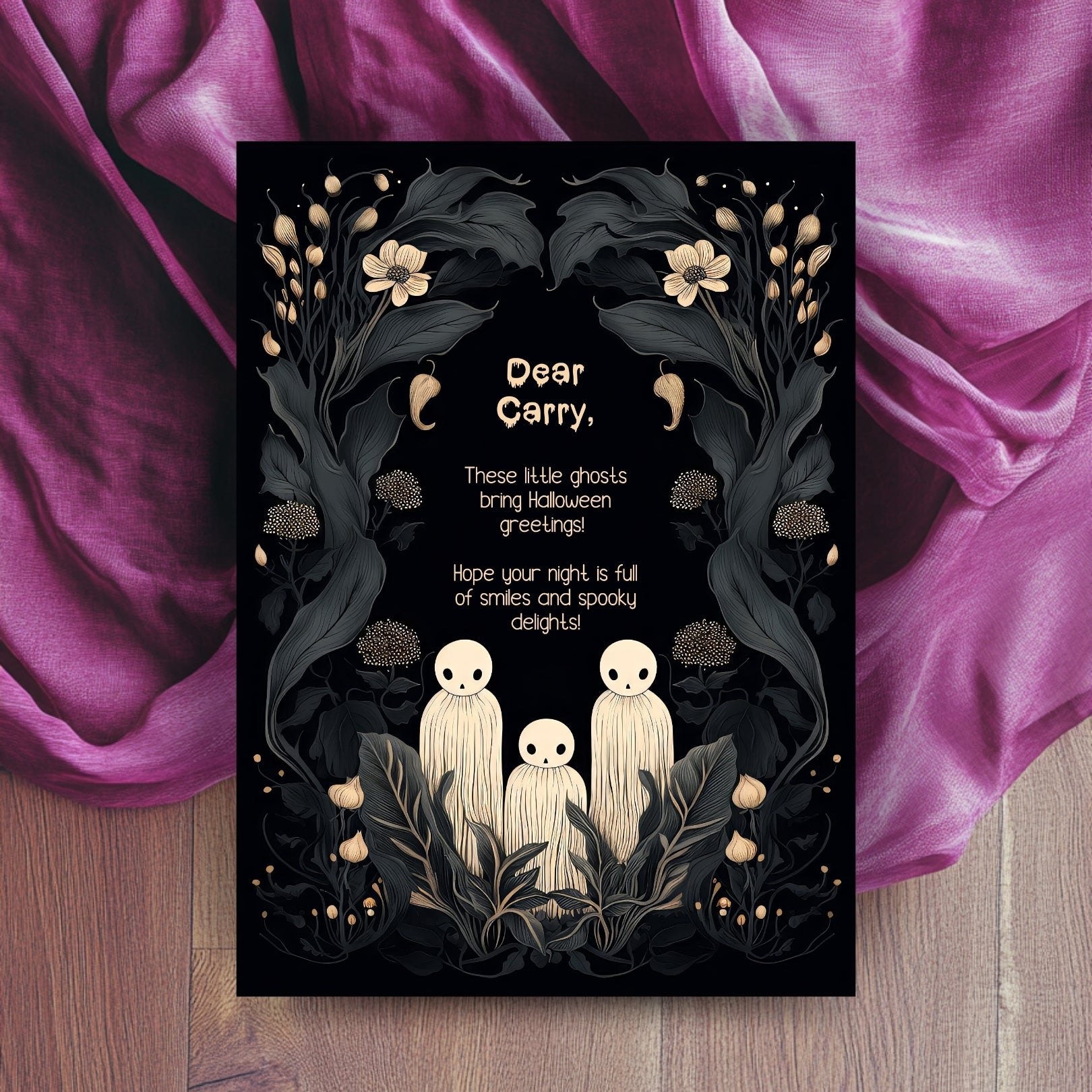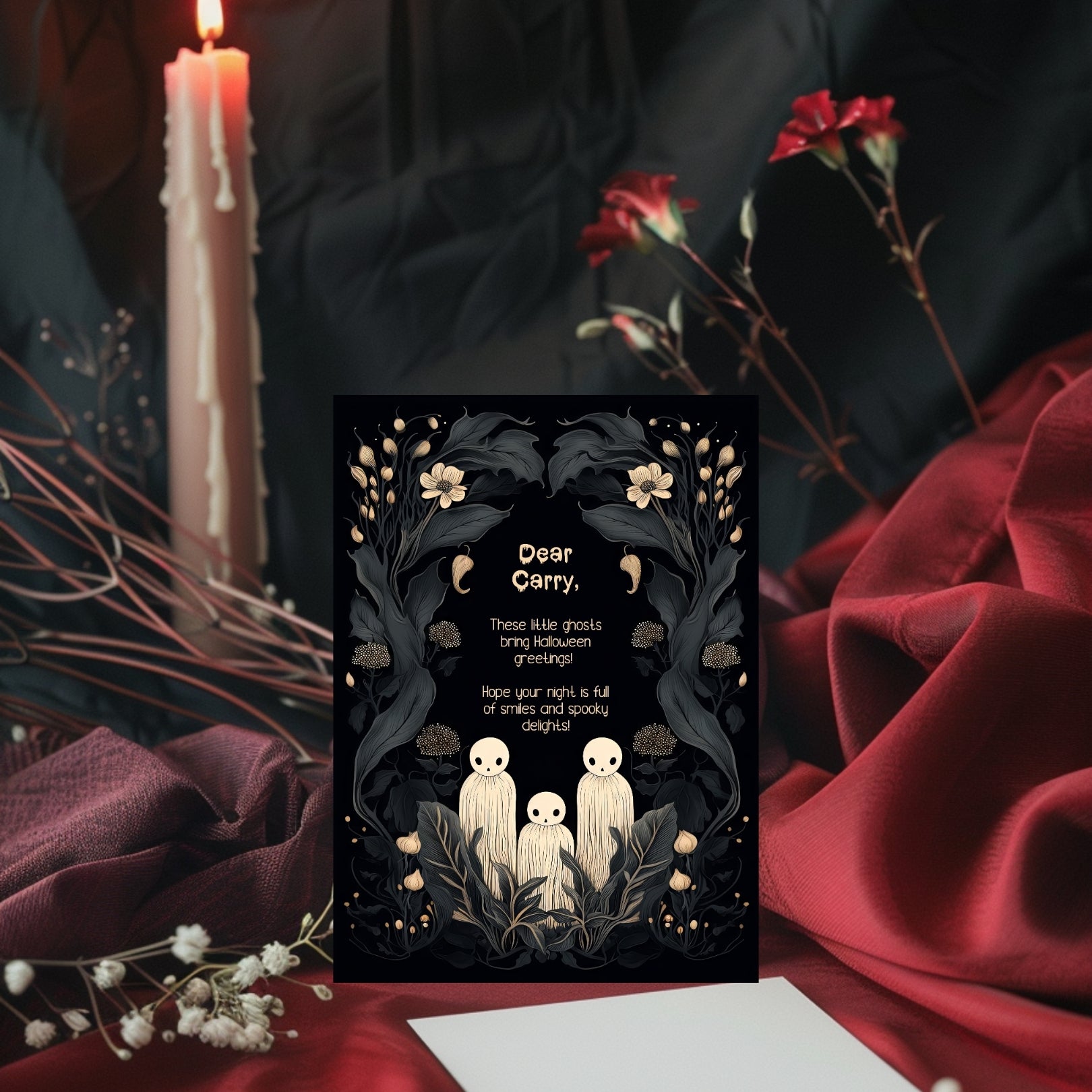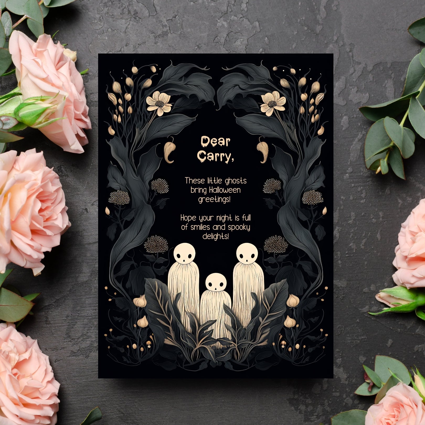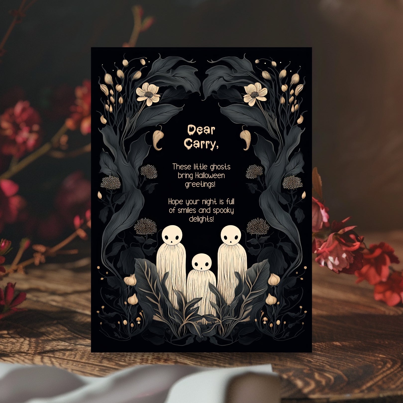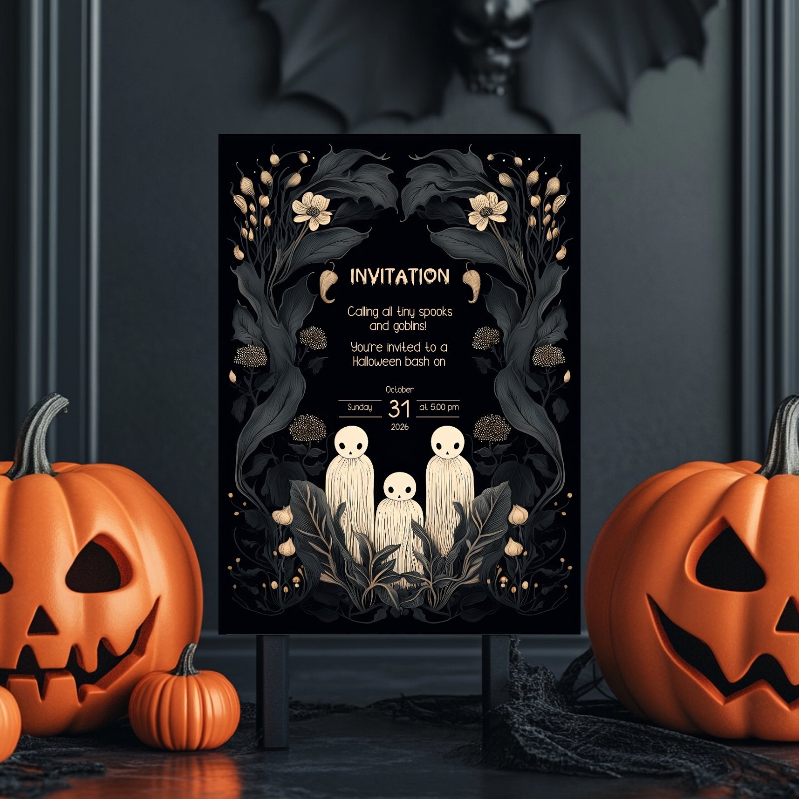 Whimsical Gothic Halloween Invitation - Cute Ghost and Botanical Design